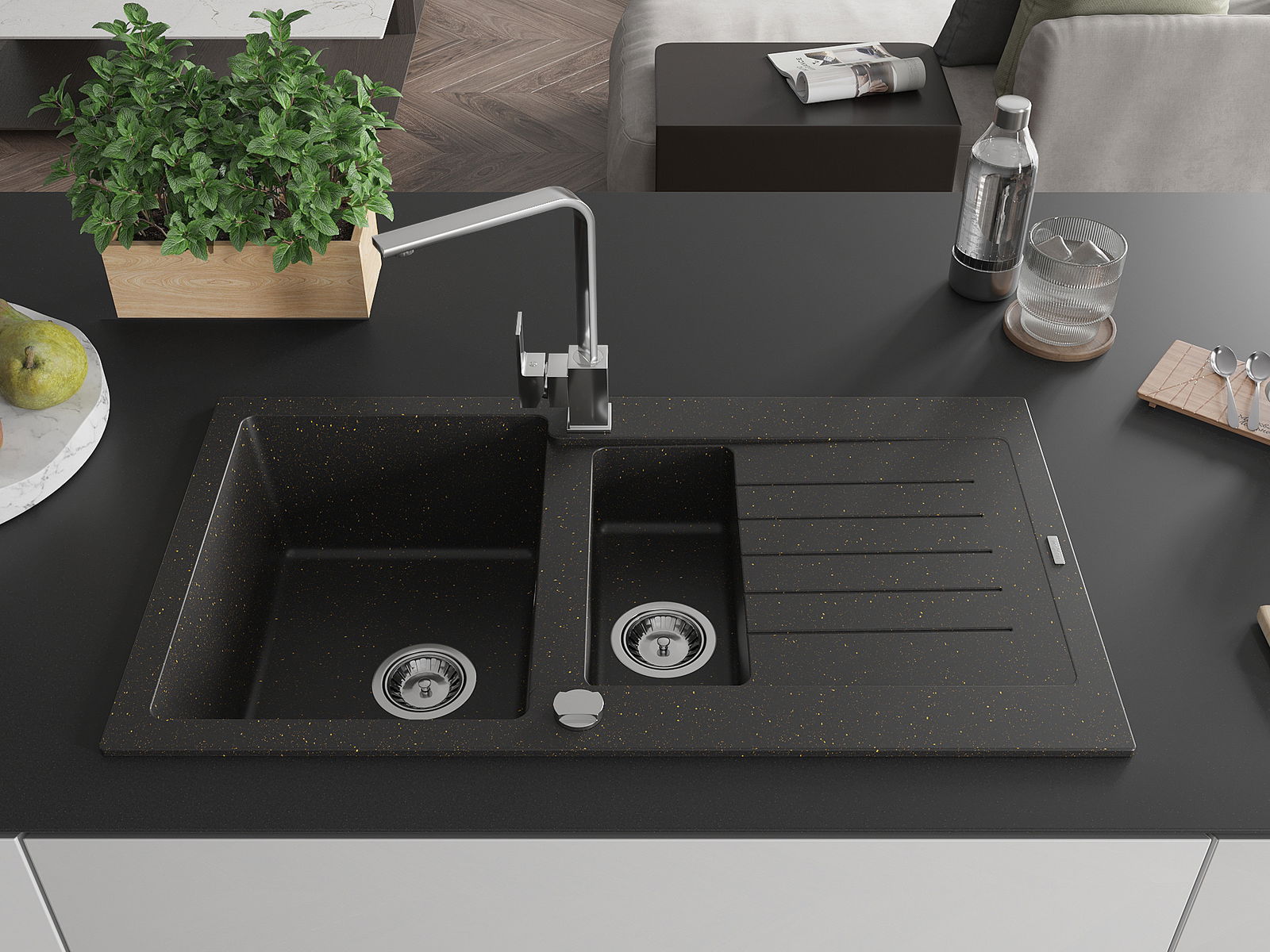 The sink is made of high quality granite. It is an elegant and, above all, practical complement to every kitchen, regardless of its style. High quality and granite durability ensure many years of use.