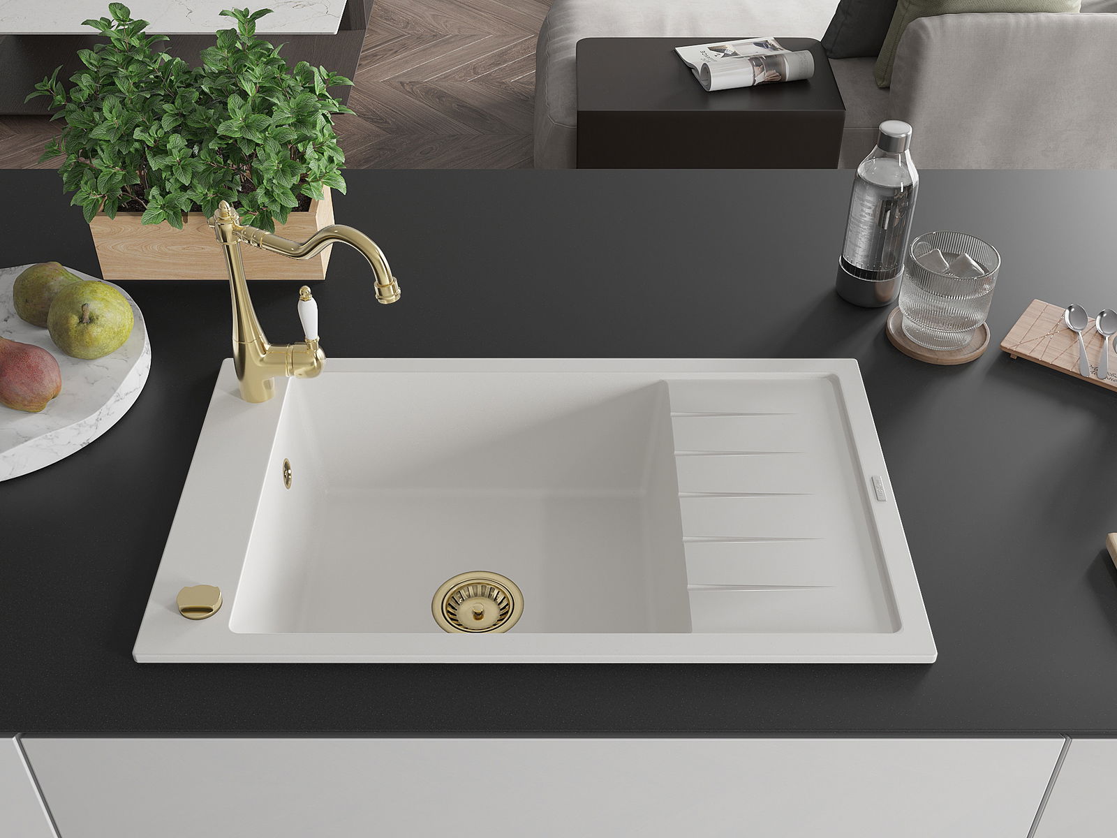 The surface of the sink is resistant to stains and discoloration, thanks to which it is easy to clean and retains its color for a long time. Aesthetic and practically complementing every kitchen.