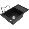 Mexen Elias granite kitchen sink 1-bowl with drainer and Carla kitchen tap, black/silver metallic - 6511-73-670700-00