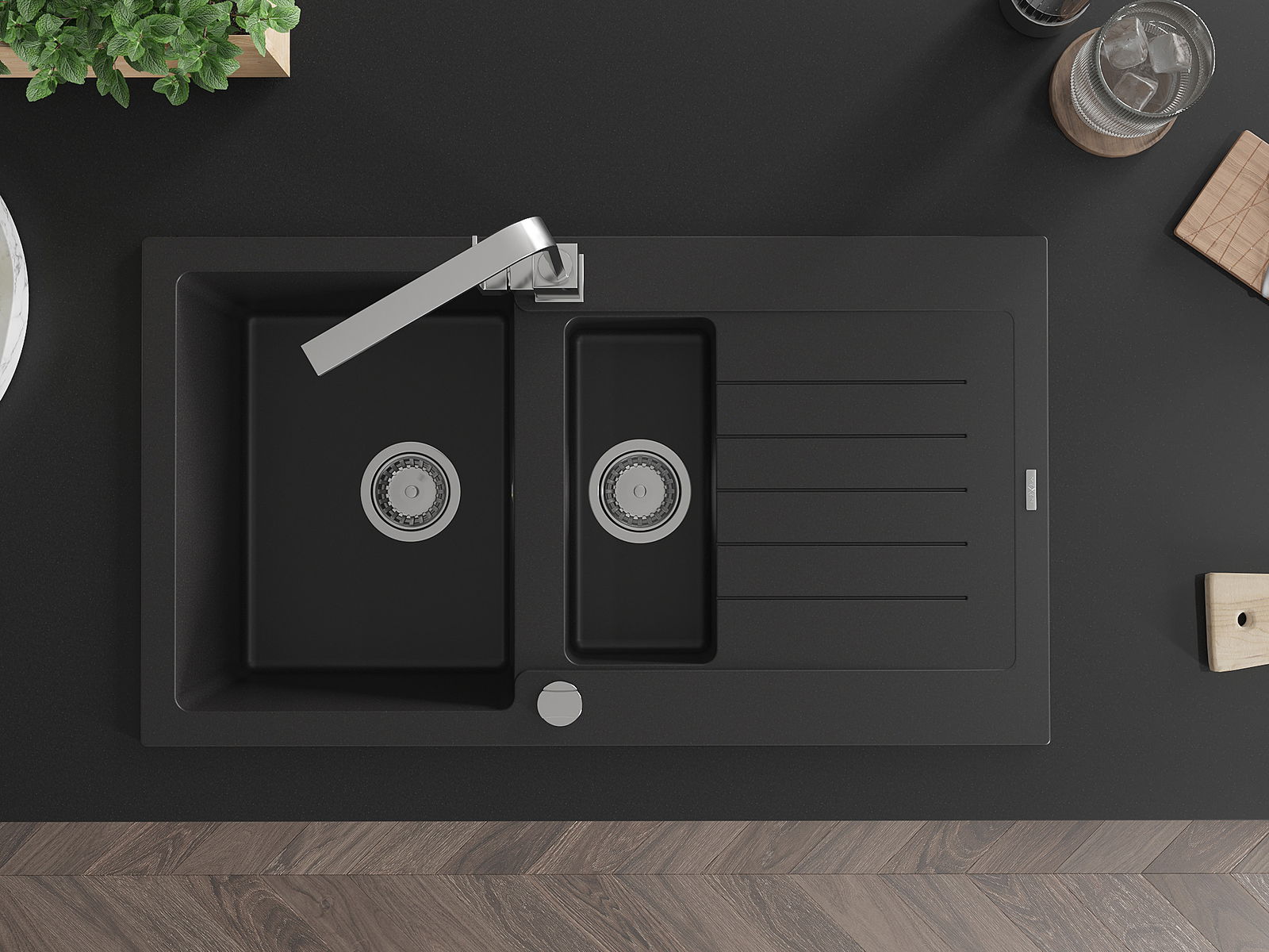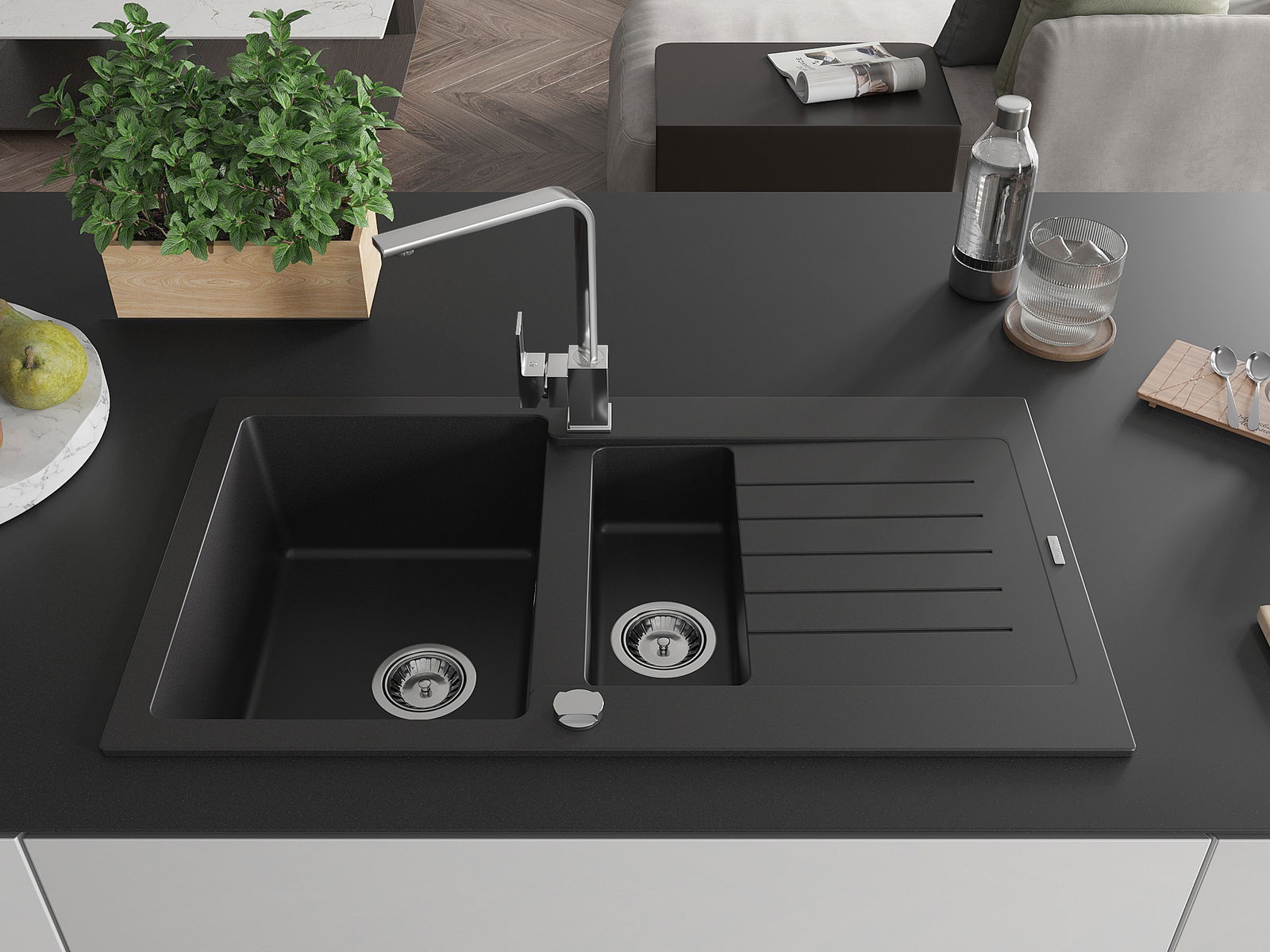 The sink is made of high quality granite. It is an elegant and, above all, practical complement to every kitchen, regardless of its style. High quality and granite durability ensure many years of use.