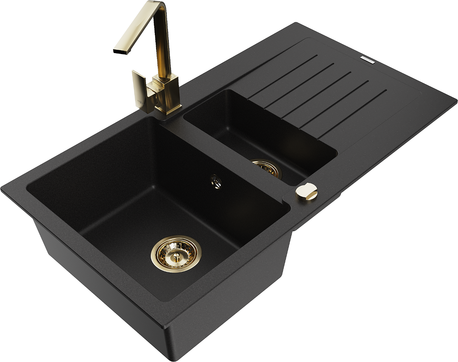 Mexen Matias granite sink 1.5-bowl with drainer and Rita kitchen tap, black - 6502-77-670300-50
