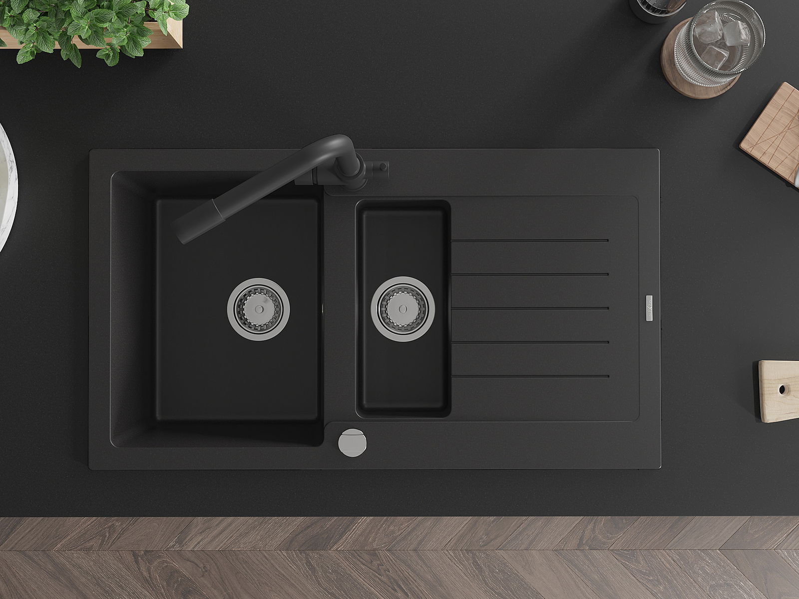 The sink is made of high quality granite. It is an elegant and, above all, practical complement to every kitchen, regardless of its style. High quality and granite durability ensure many years of use.