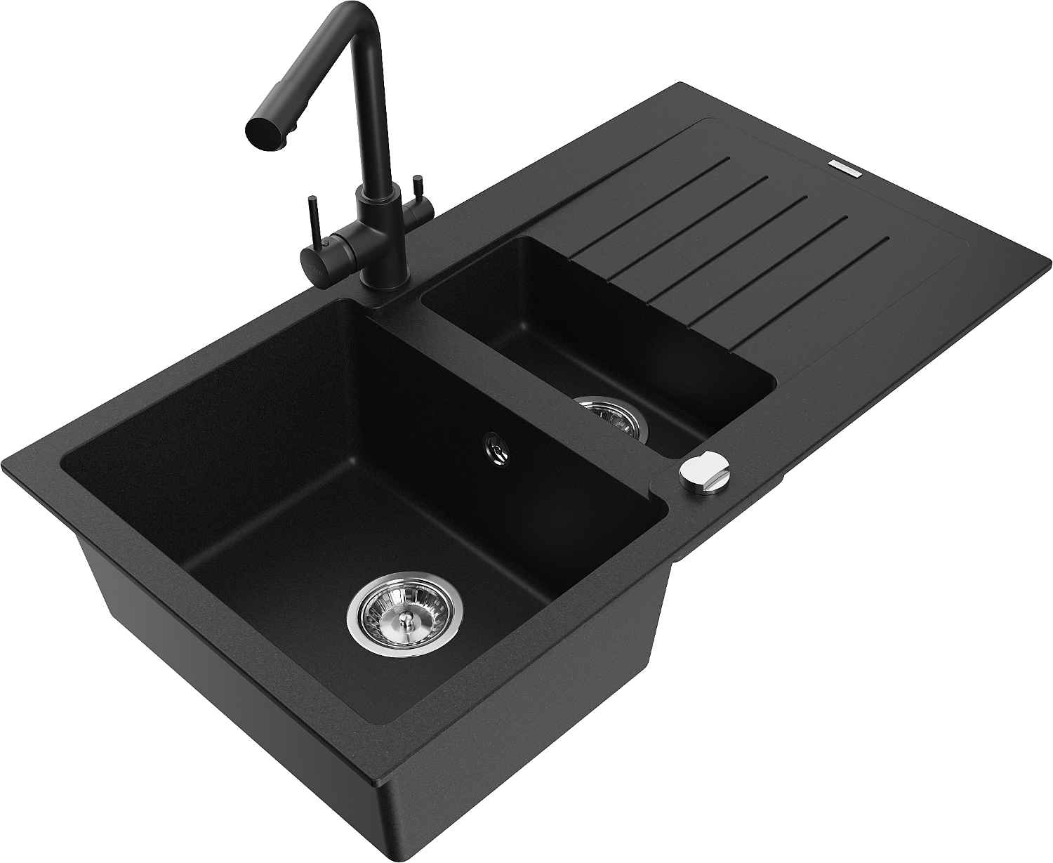 Mexen Matias granite sink 1.5-bowl with drainer and Duero kitchen tap, black - 6502-77-671600-70