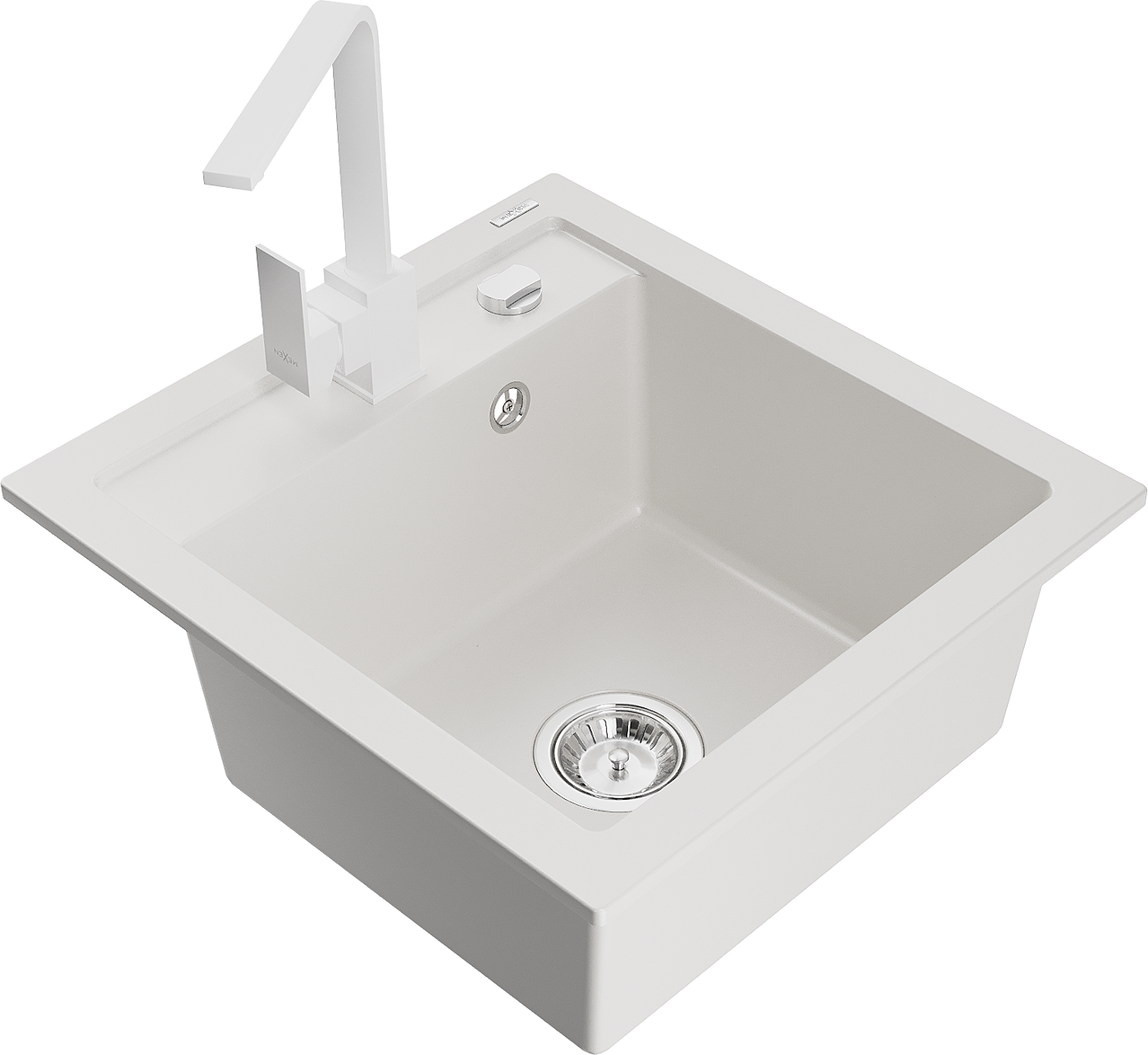 Mexen Vito granite sink 1-bowl with Rita kitchen tap, white - 6503-20-670300-20