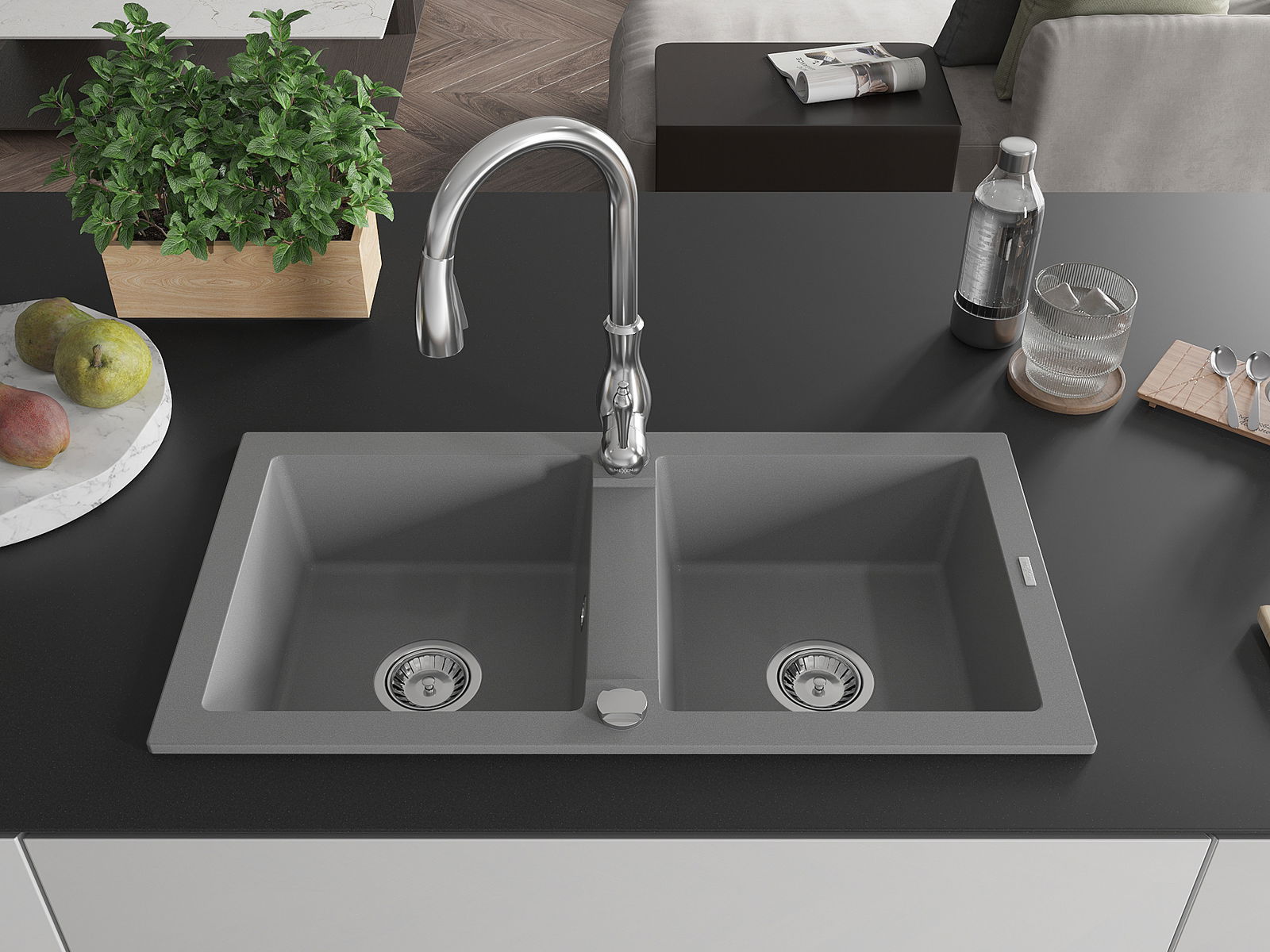 The sink is made of high quality granite. It is an elegant and, above all, practical complement to every kitchen, regardless of its style. High quality and granite durability ensure many years of use.