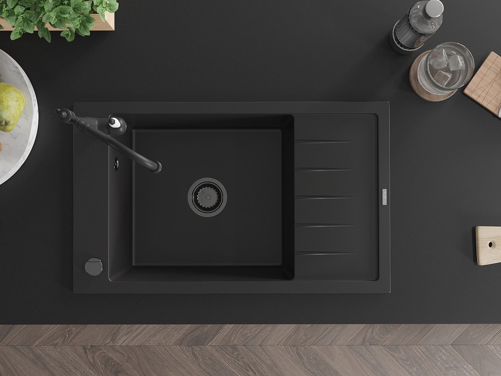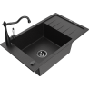 Mexen Elias granite kitchen sink single-bowl with drainer and Carla kitchen tap, black - 6511-77-670700-70-B