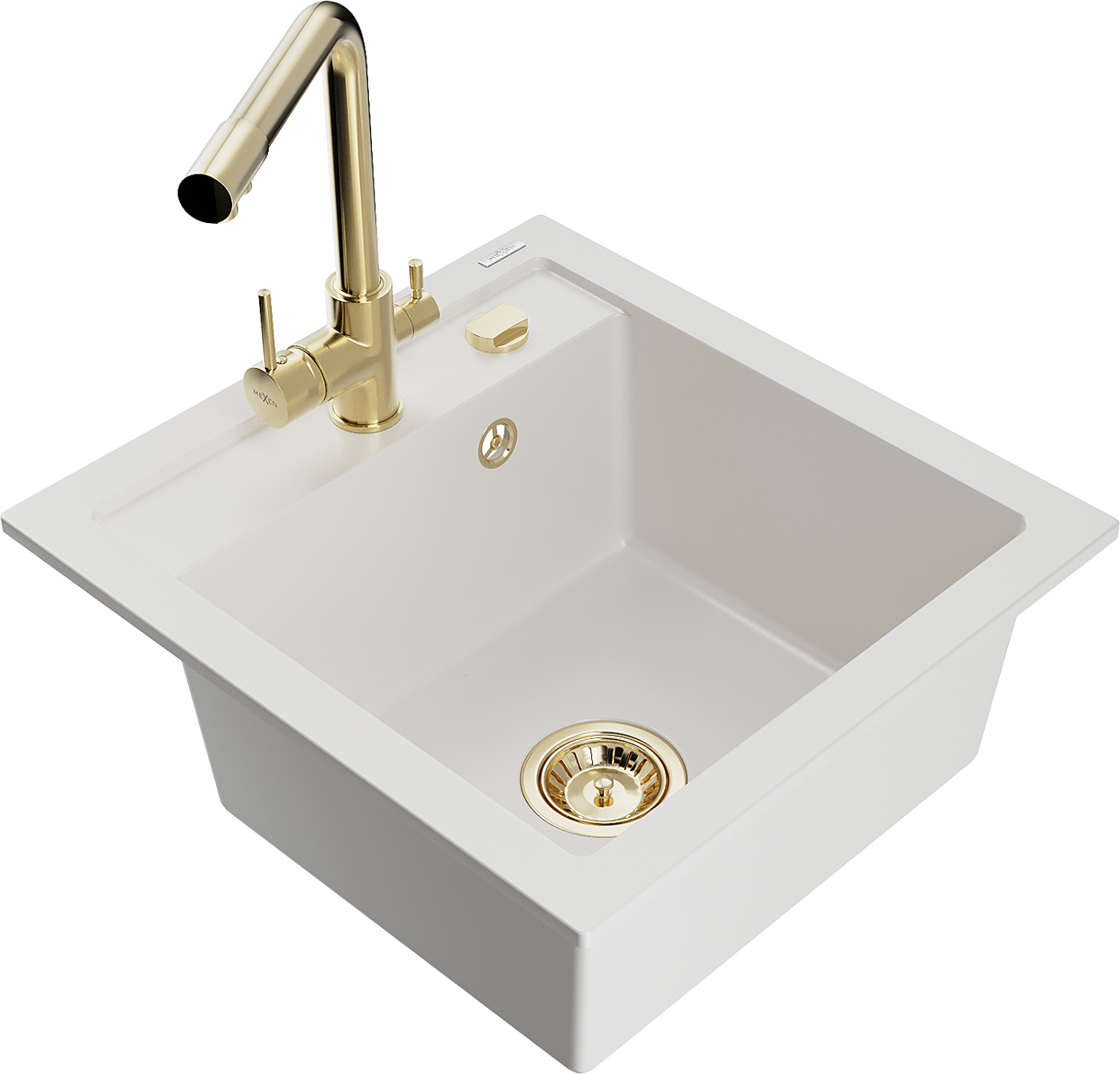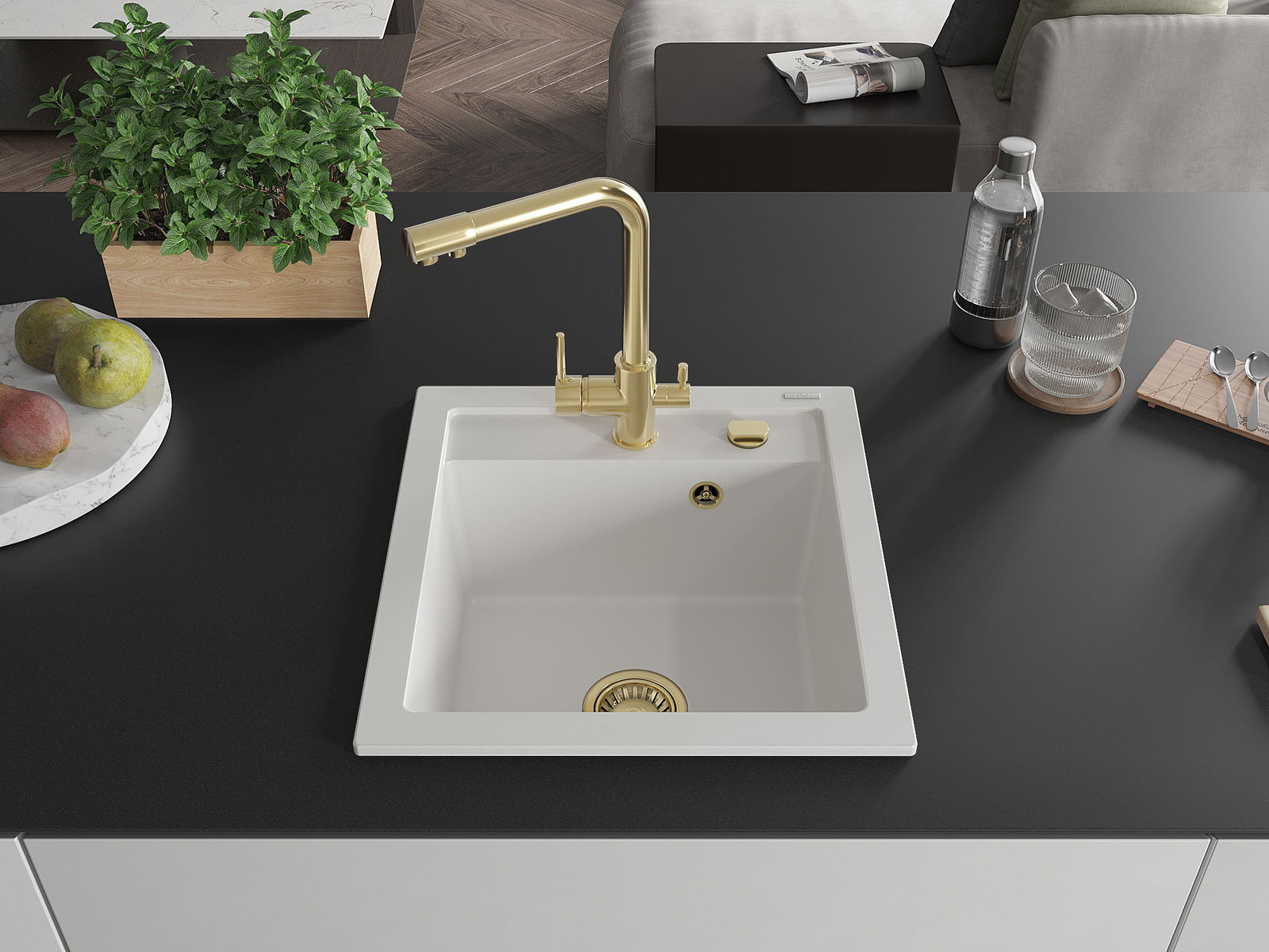 The surface of the sink is resistant to stains and discolouration, making it easy to maintain cleanliness and retain its colour for a long time of use. An aesthetic and practical addition to any kitchen.
