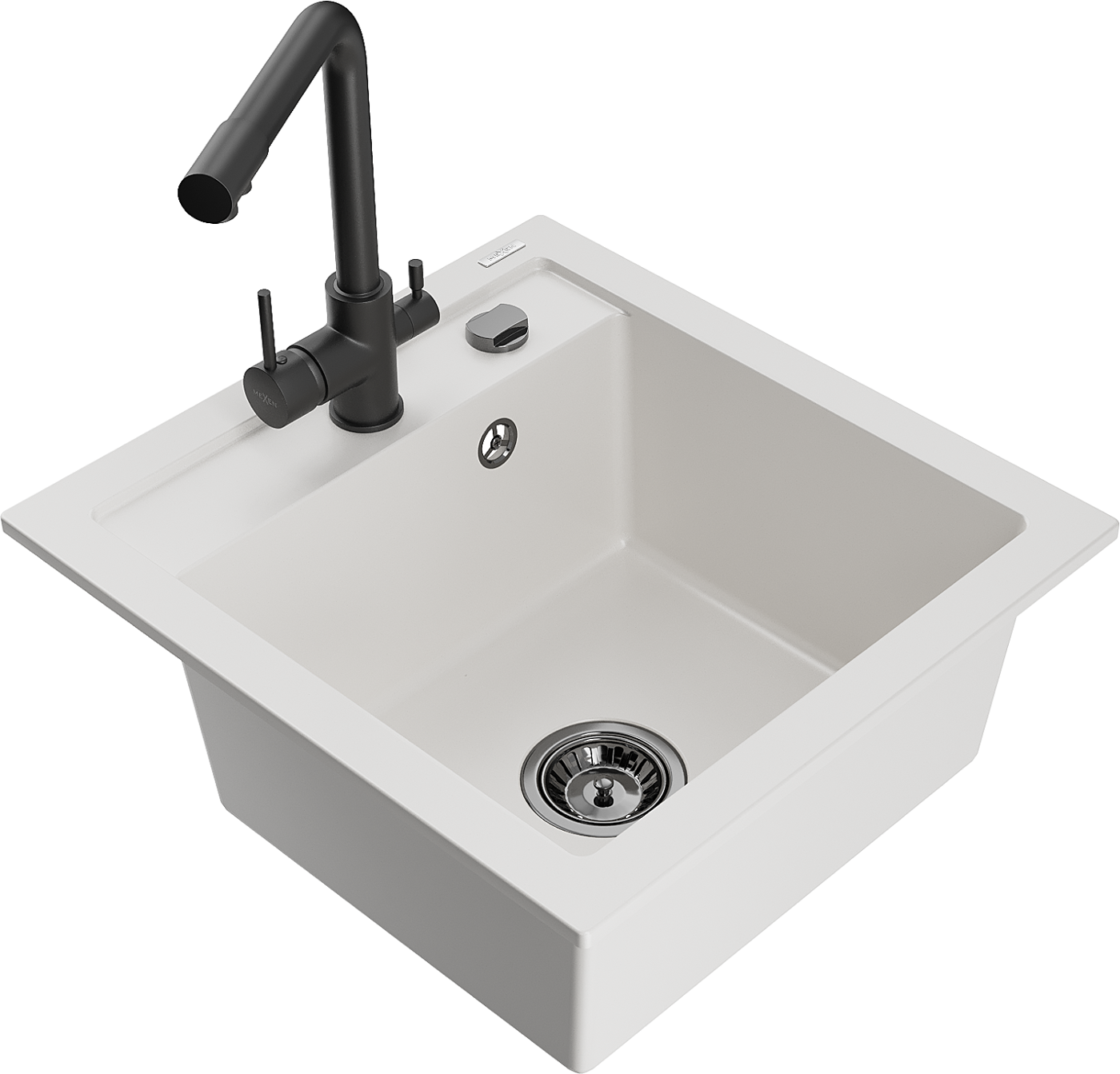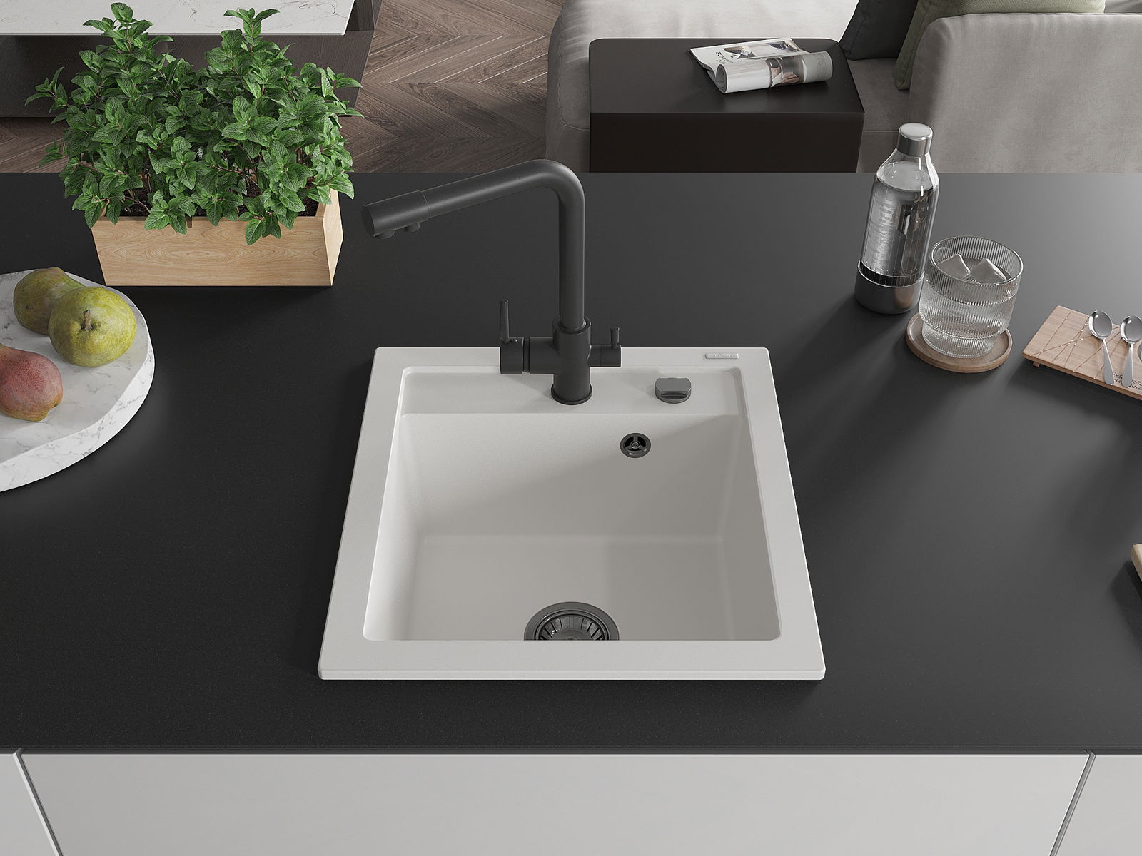 The surface of the sink is resistant to stains and discolouration, making it easy to maintain cleanliness and retain its colour for a long time of use. An aesthetic and practical addition to any kitchen.