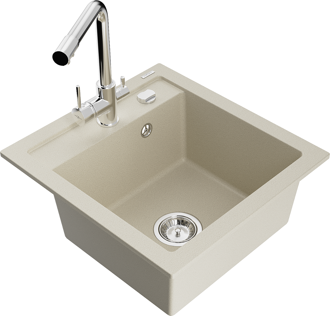 Mexen Vito 1-bowl granite sink with Duero kitchen mixer tap, beige - 6503-69-671600-00