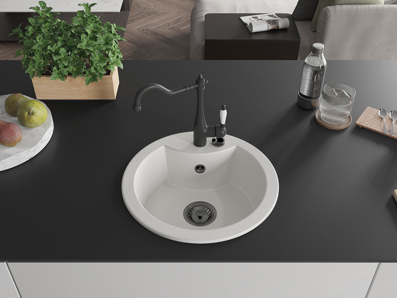 The sink is made of high quality granite. It is an elegant and, above all, practical complement to every kitchen, regardless of its style. High quality and granite durability ensure many years of use.
