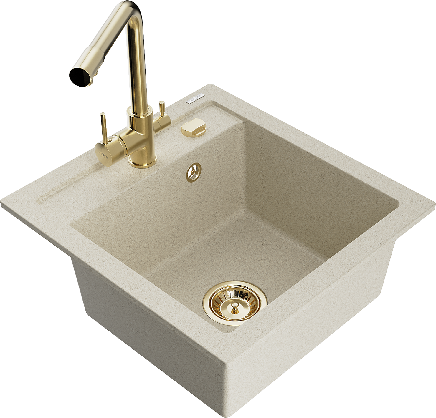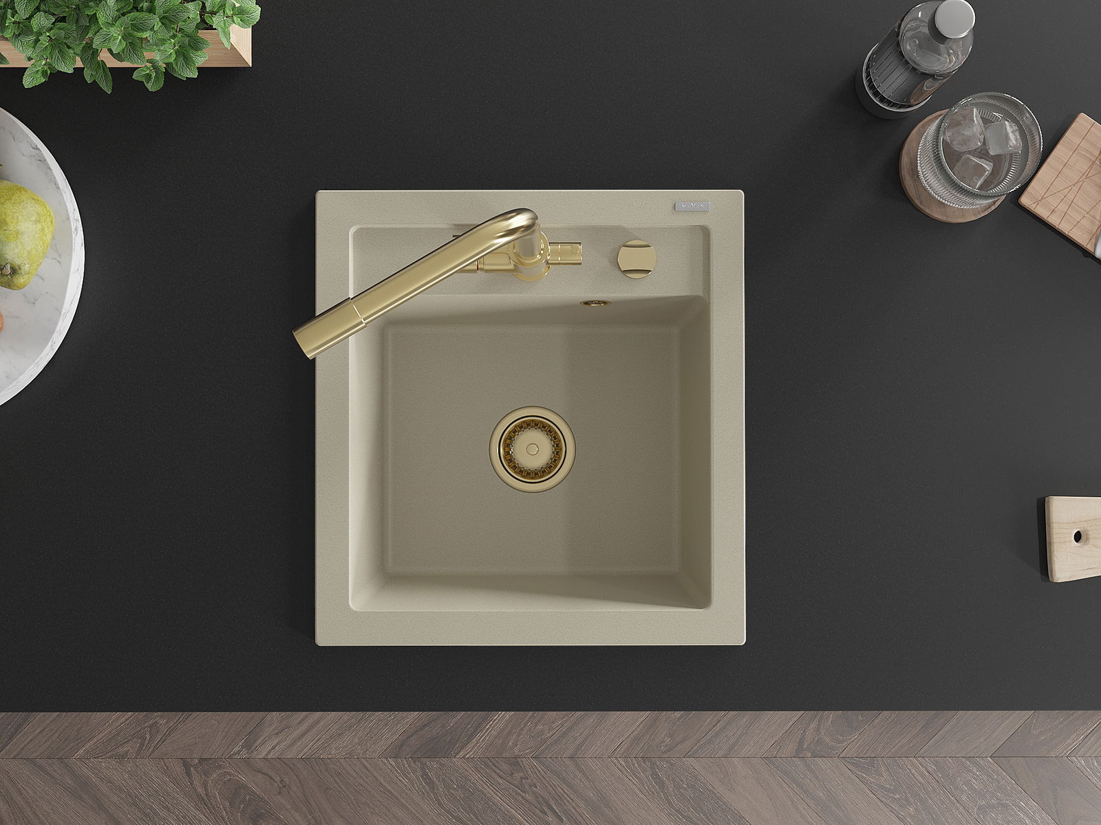 Mexen Vito 1-bowl Granite Sink with Duero Kitchen Tap, Beige - 6503-69-671600-50