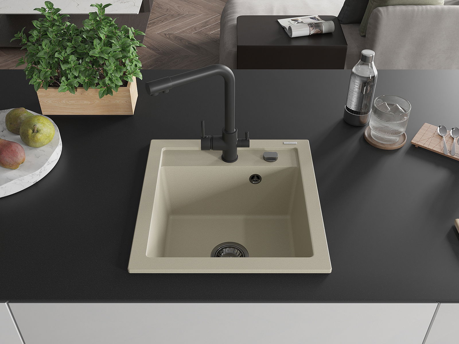 The surface of the sink is resistant to stains and discoloration, thanks to which it is easy to clean and retains its color for a long time. Aesthetic and practically complementing every kitchen.