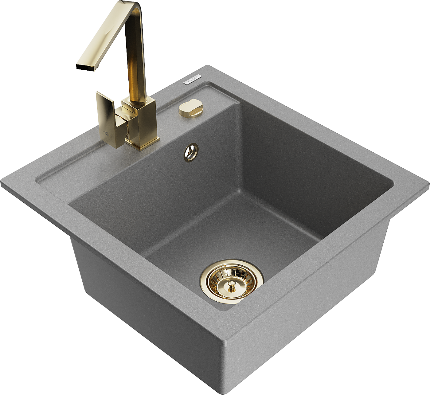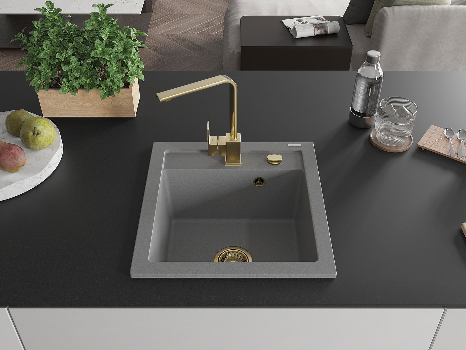 Mexen Vito granite kitchen sink 1-bowl with Rita kitchen tap, grey - 6503-71-670300-50