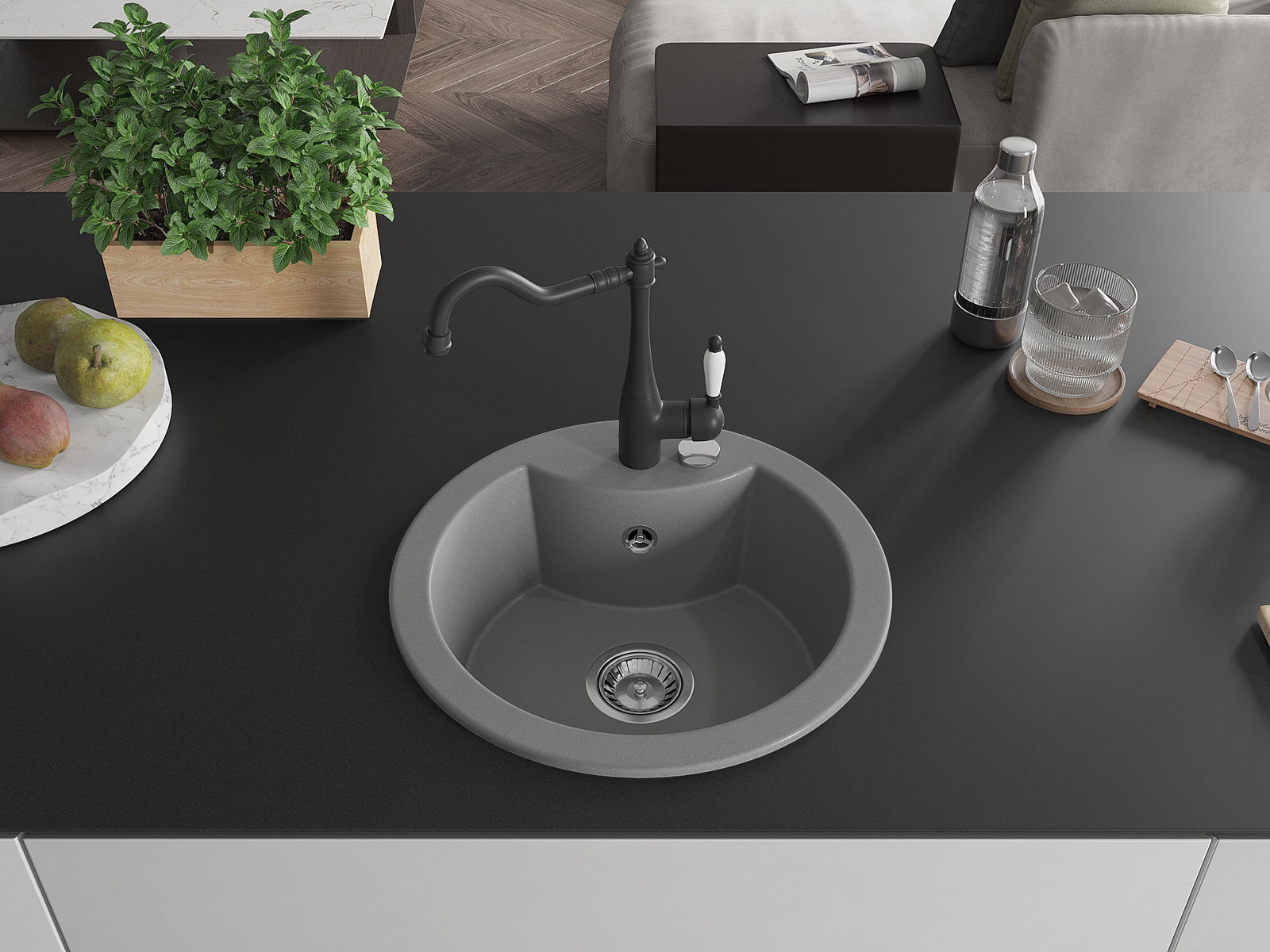 The sink is made of high quality granite. It is an elegant and, above all, practical complement to every kitchen, regardless of its style. High quality and granite durability ensure many years of use.