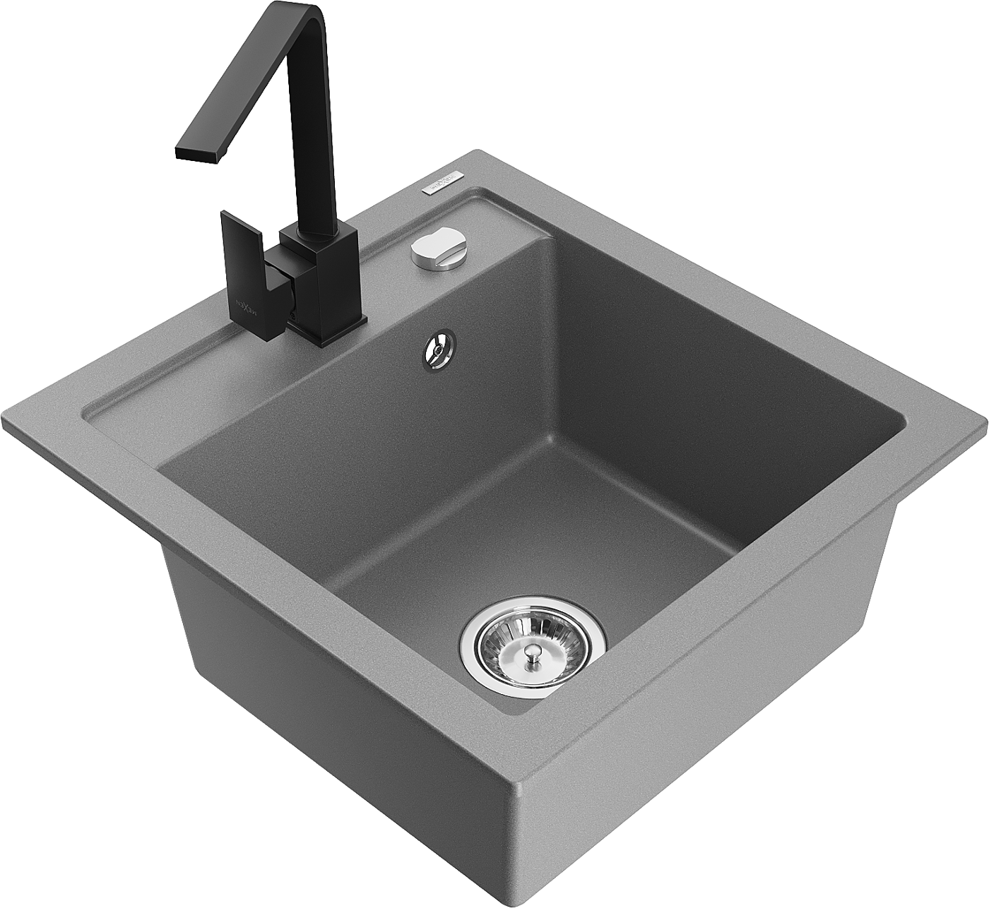 Mexen Vito 1-bowl granite sink with Rita kitchen tap, grey - 6503-71-670300-70