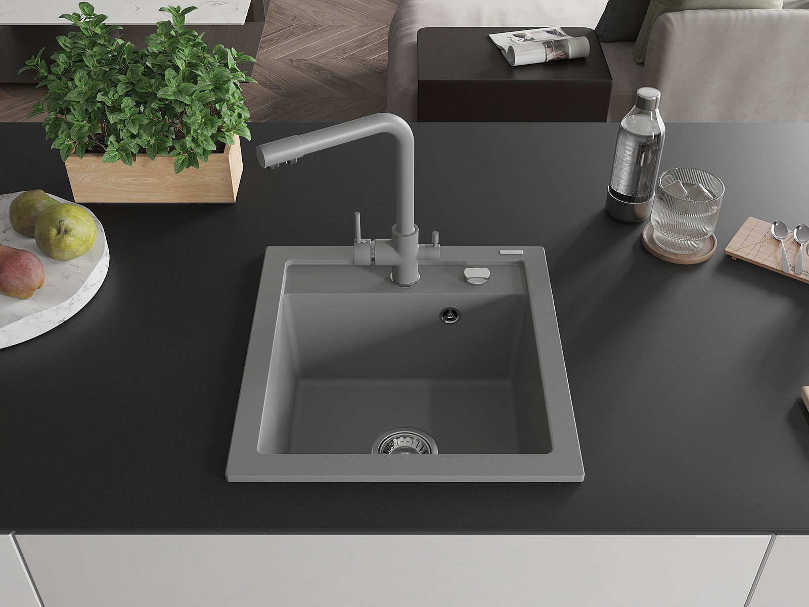 The surface of the sink is resistant to stains and discoloration, thanks to which it is easy to clean and retains its color for a long time. Aesthetic and practically complementing every kitchen.