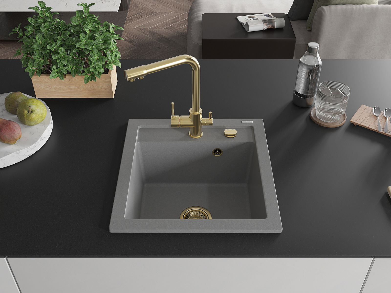 Mexen Vito granite kitchen sink 1-bowl with Duero kitchen tap, grey - 6503-71-671600-50