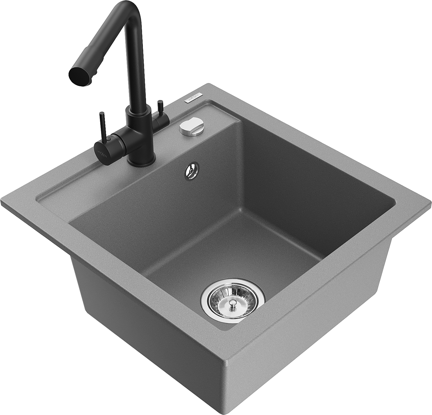 Mexen Vito granite sink 1-bowl with Duero kitchen tap, grey - 6503-71-671600-70
