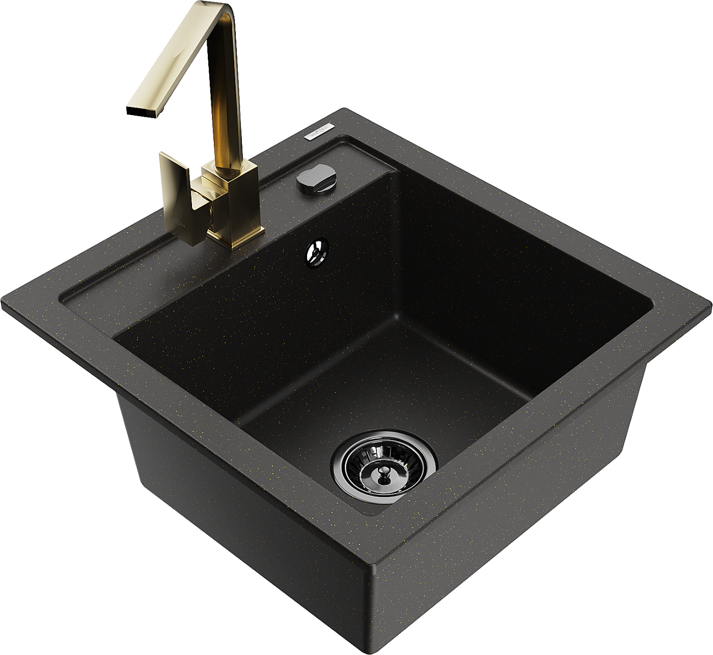 Mexen Vito 1-bowl granite sink with Rita kitchen tap, black/gold metallic - 6503-75-670300-50-B