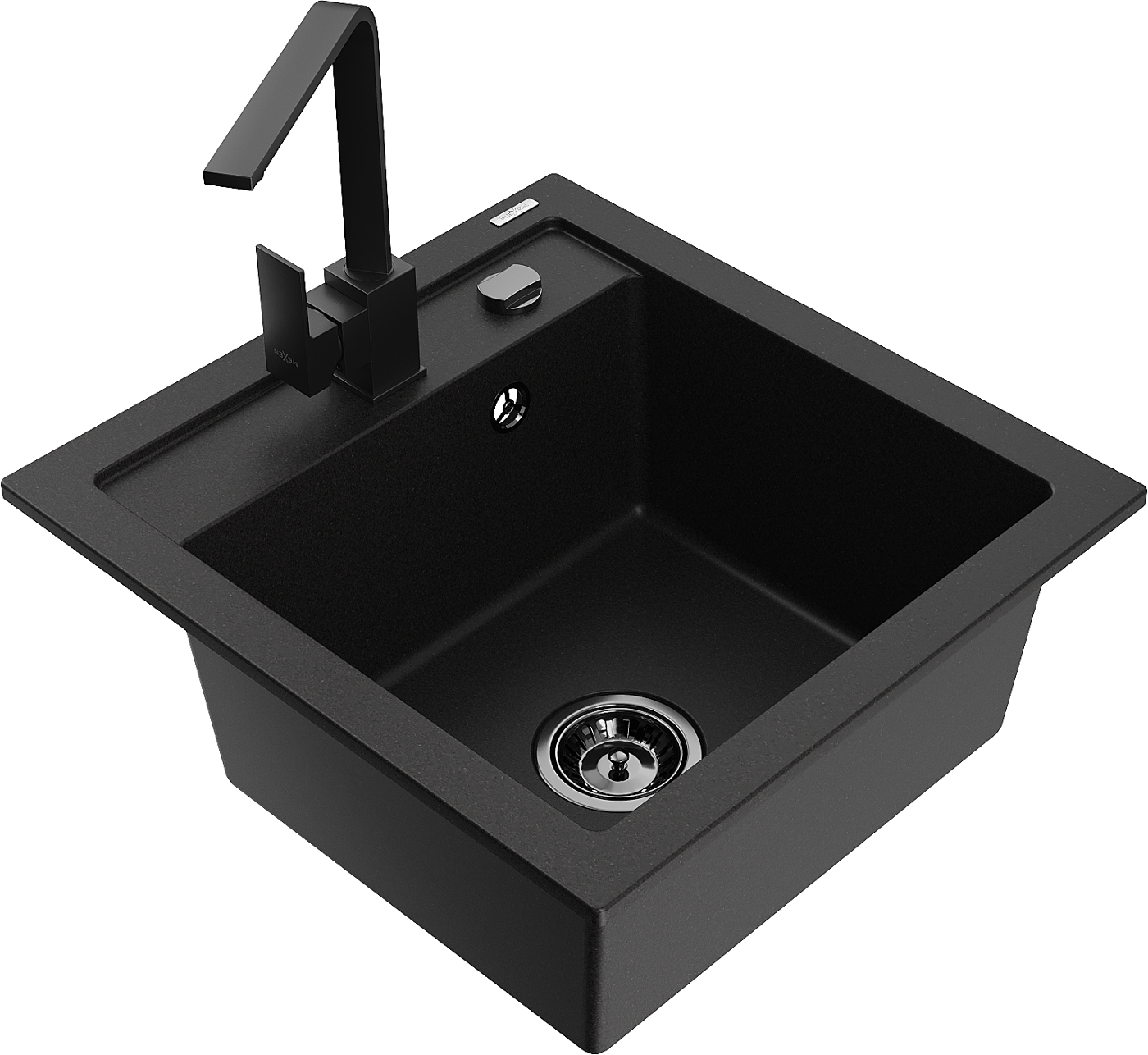 Mexen Vito 1-bowl granite kitchen sink with Rita mixer tap, black - 6503-77-670300-70-B