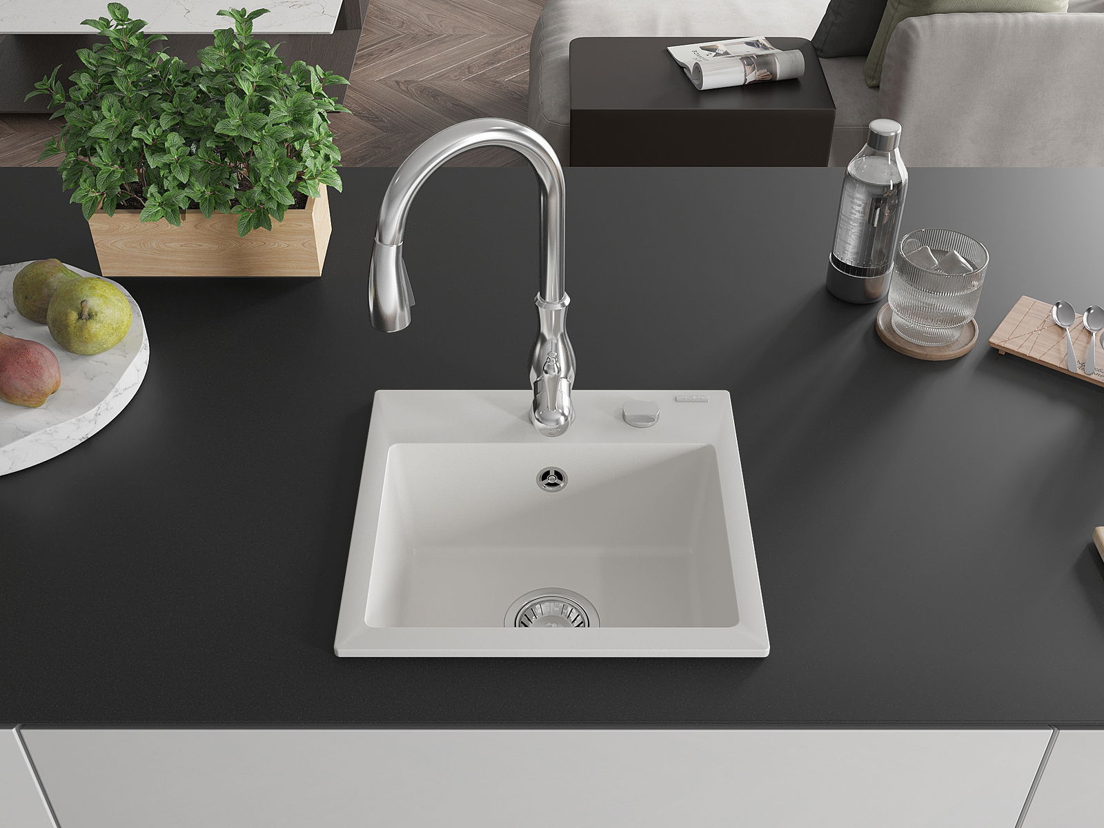 The surface of the sink is resistant to stains and discoloration, thanks to which it is easy to clean and retains its color for a long time. Aesthetic and practically complementing every kitchen.