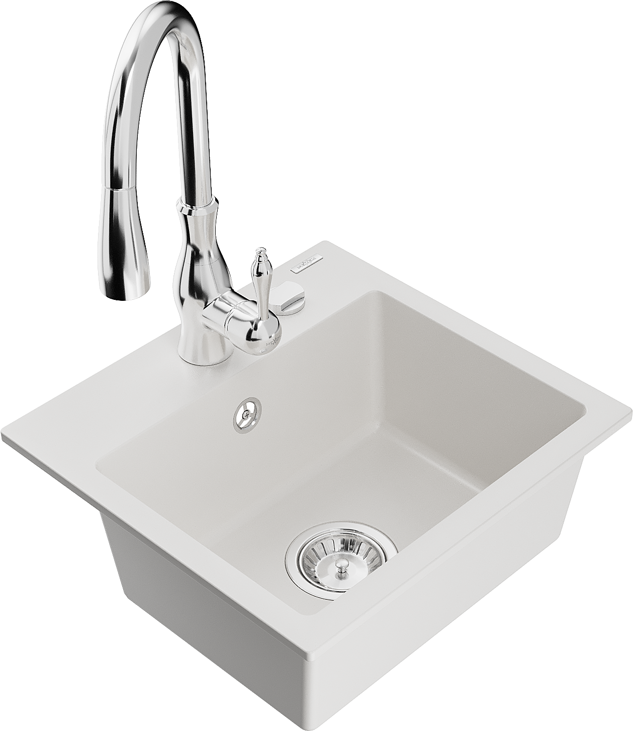 Mexen Milo granite sink single bowl with Savita kitchen tap, white - 6505-20-672601-00