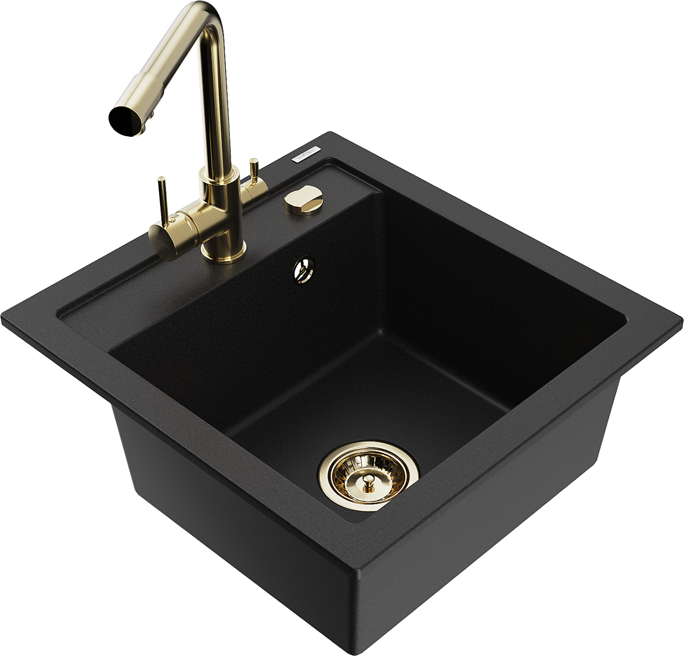 Mexen Vito 1-bowl granite sink with Duero kitchen tap, black - 6503-77-671600-50