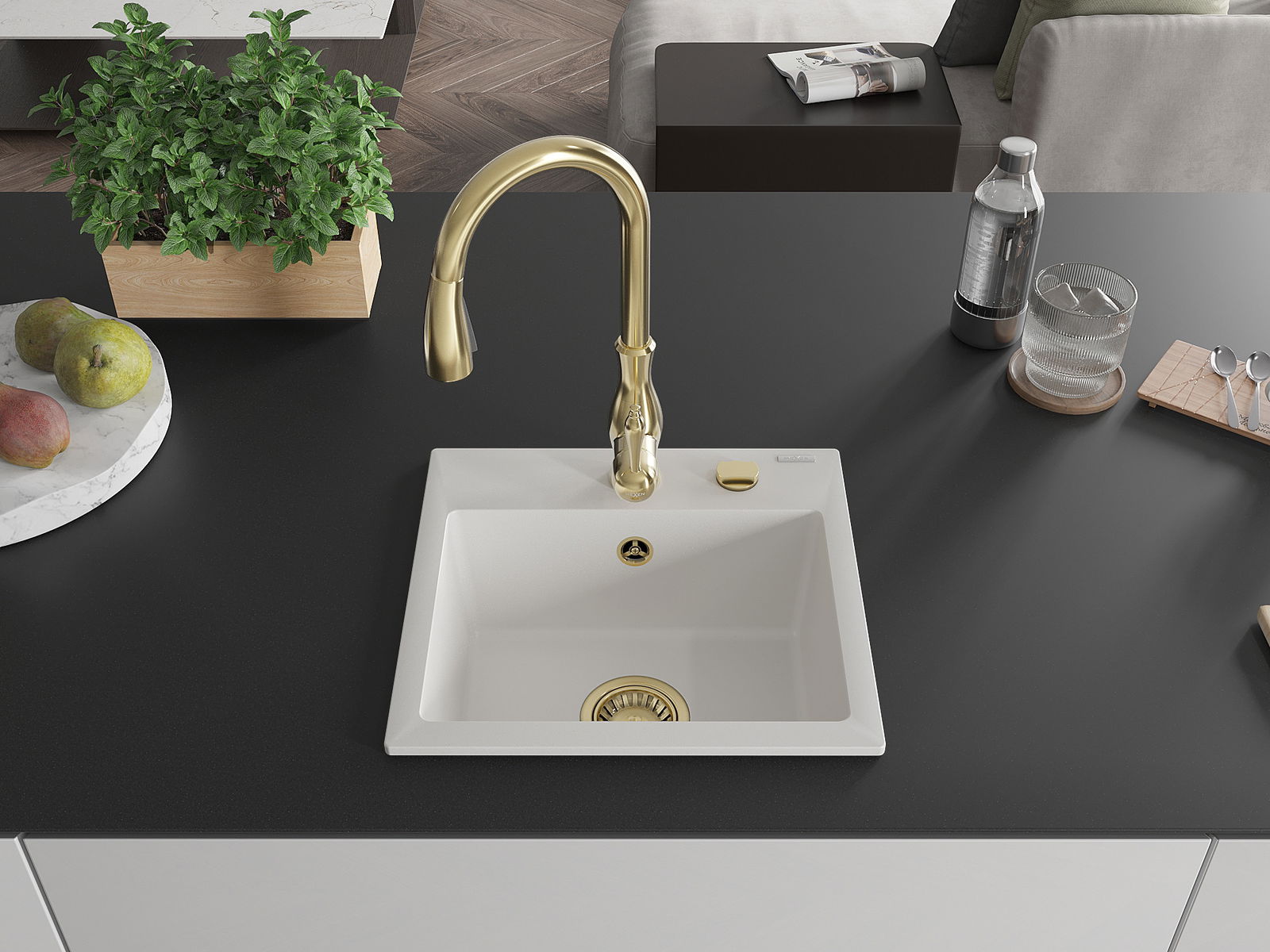 The sink is made of high quality granite. It is an elegant and, above all, practical complement to every kitchen, regardless of its style. High quality and granite durability ensure many years of use.