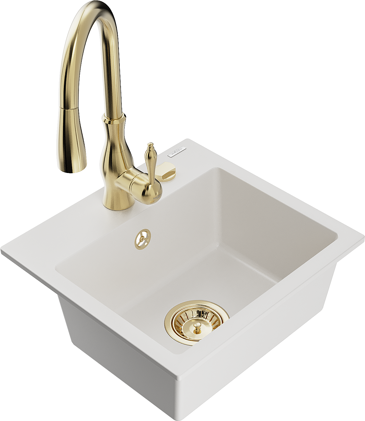 Mexen Milo granite kitchen sink 1-bowl with Savita kitchen tap, white - 6505-20-672601-50