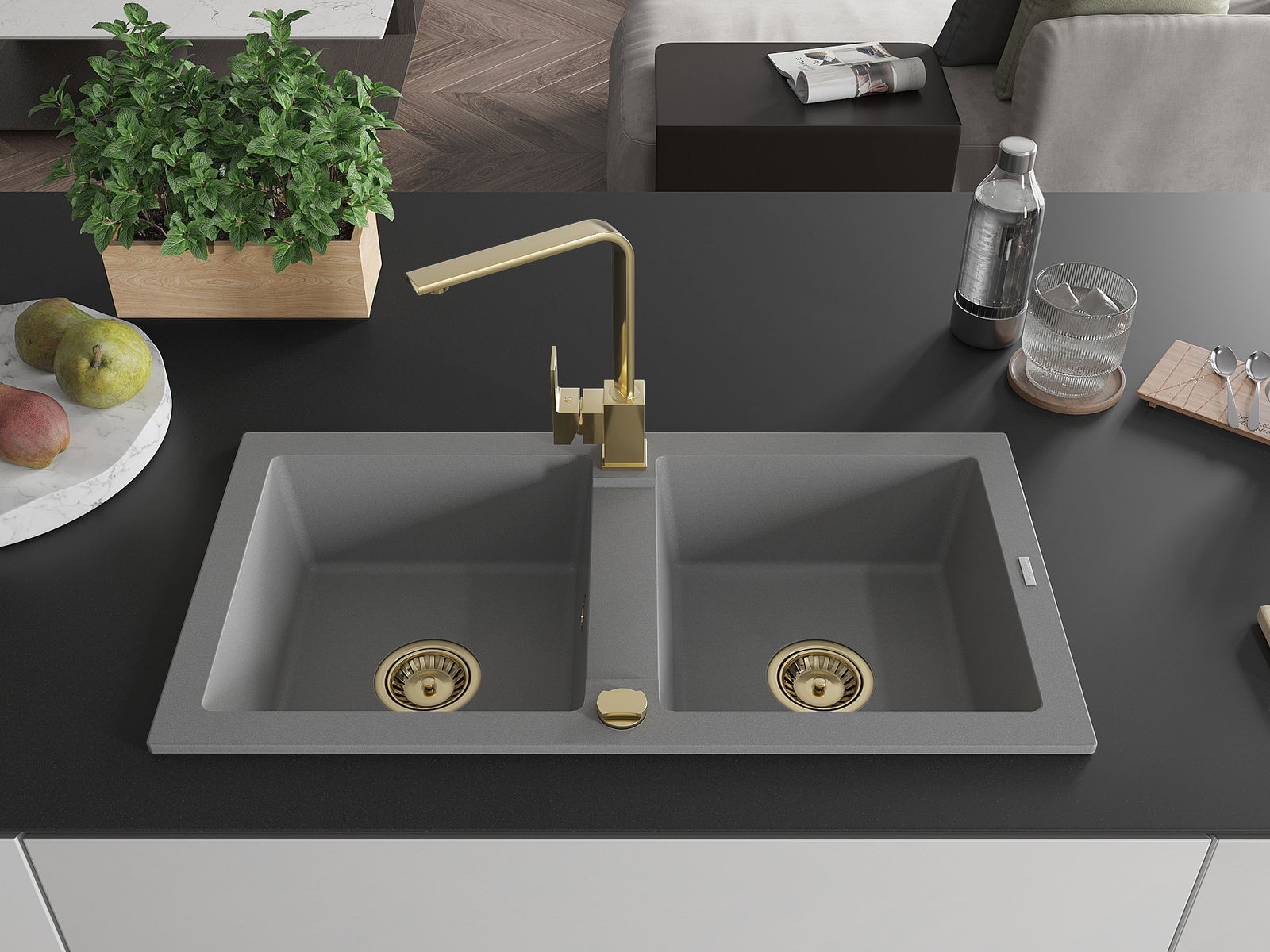 The sink is made of high quality granite. It is an elegant and, above all, practical complement to every kitchen, regardless of its style. High quality and granite durability ensure many years of use.
