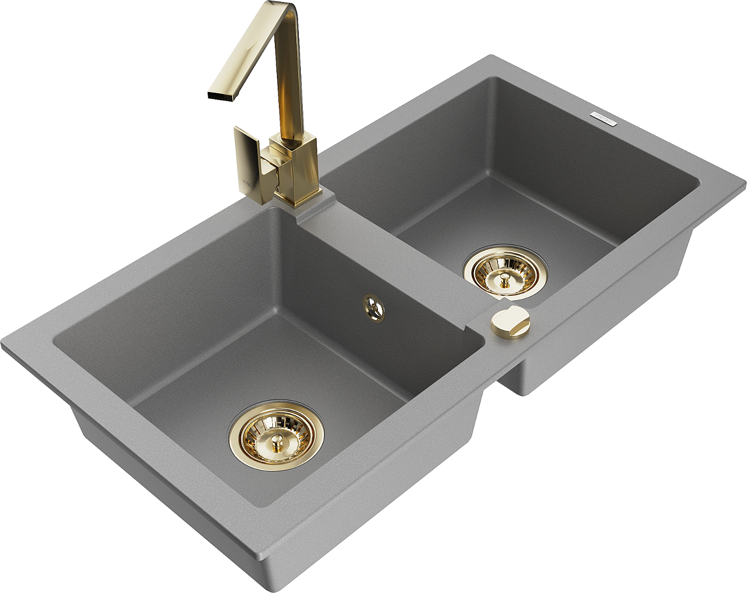 Mexen Mario granite double sink with Rita kitchen tap, grey - 6504-71-670300-50