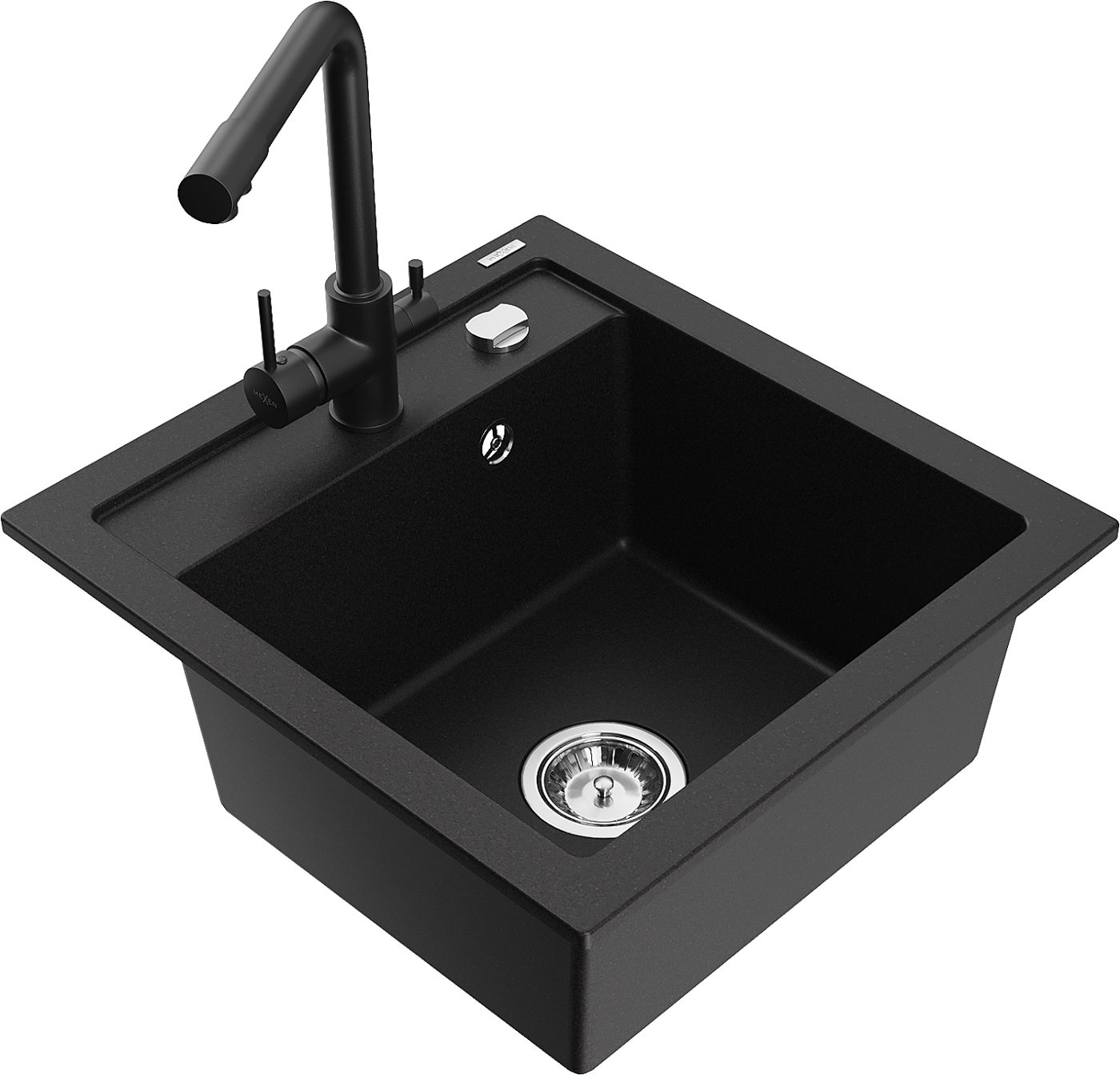 Mexen Vito granite kitchen sink with 1 bowl and Duero kitchen tap, black - 6503-77-671600-70