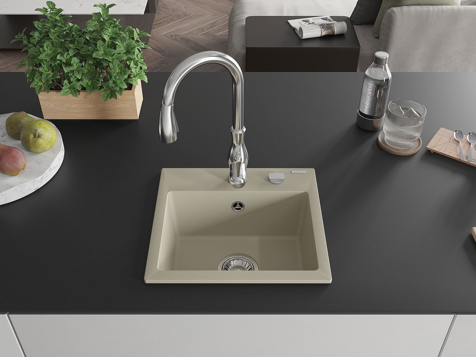 The surface of the sink is resistant to stains and discoloration, thanks to which it is easy to clean and retains its color for a long time. Aesthetic and practically complementing every kitchen.