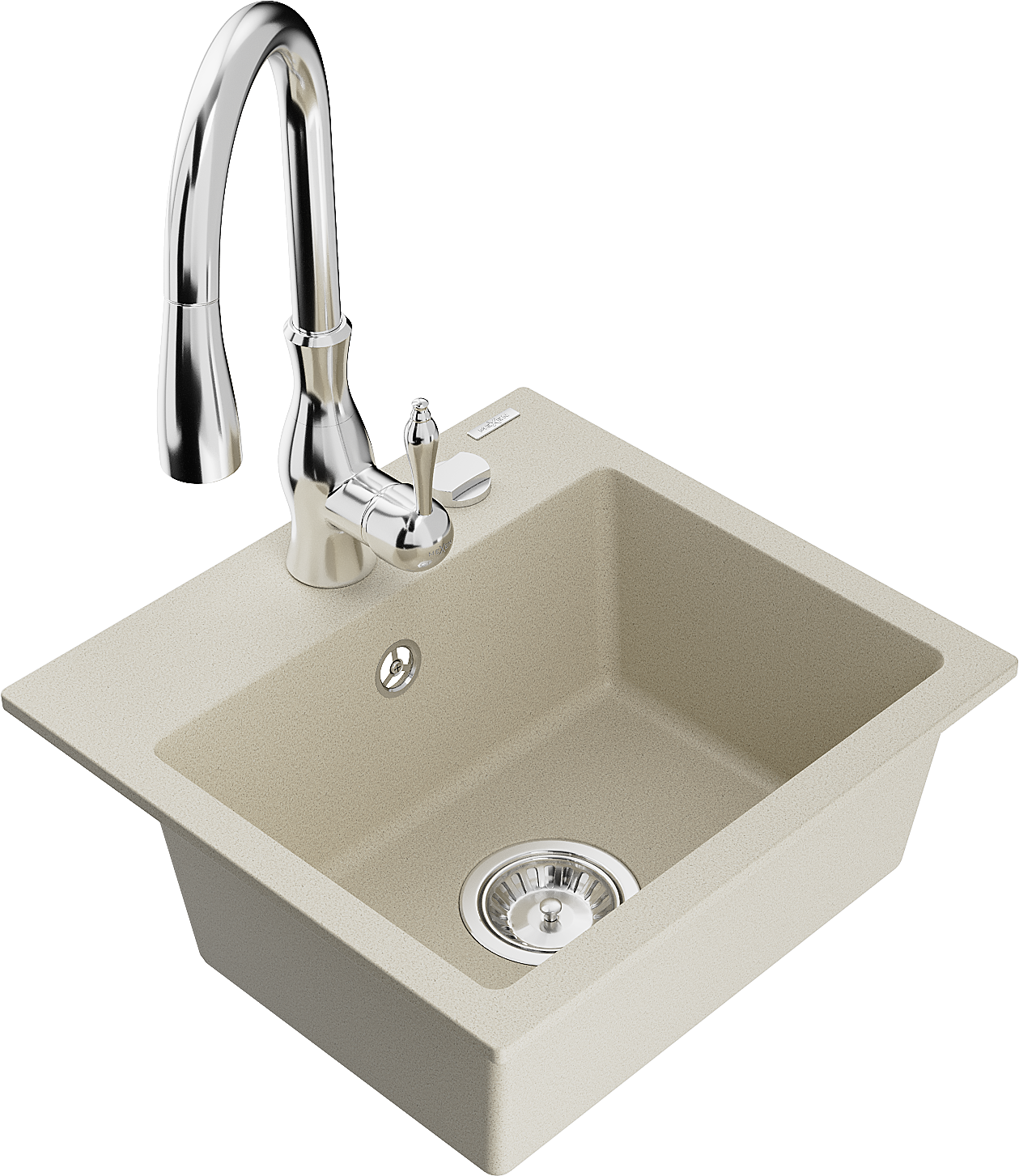 Mexen Milo single-bowl granite sink with Savita kitchen tap, beige - 6505-69-672601-00