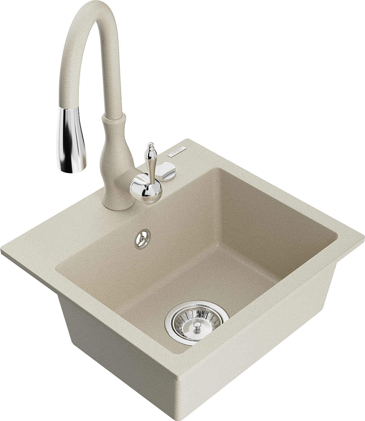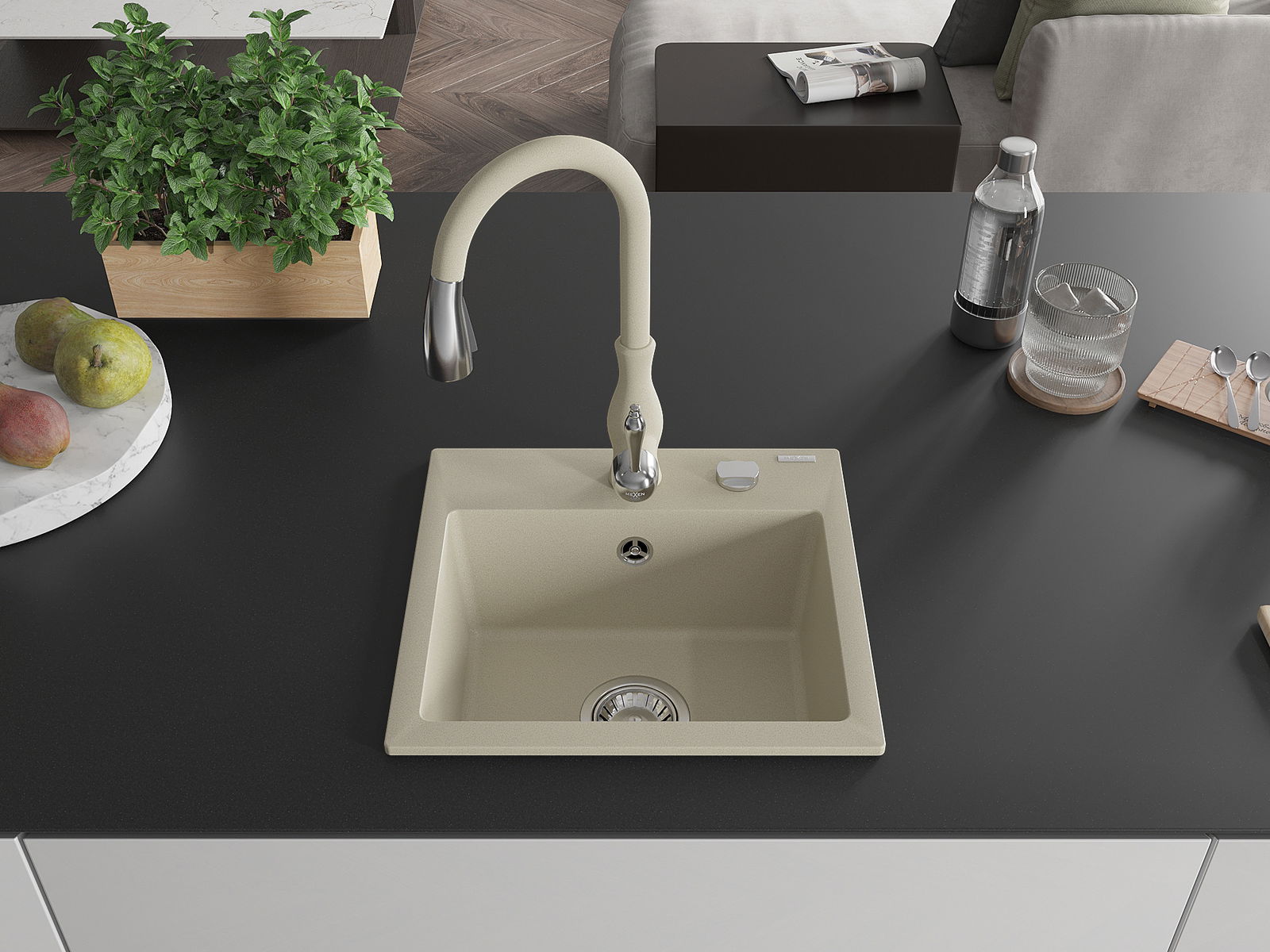 Mexen Milo granite sink with 1-bowl and Savita kitchen tap, beige - 6505-69-672601-69