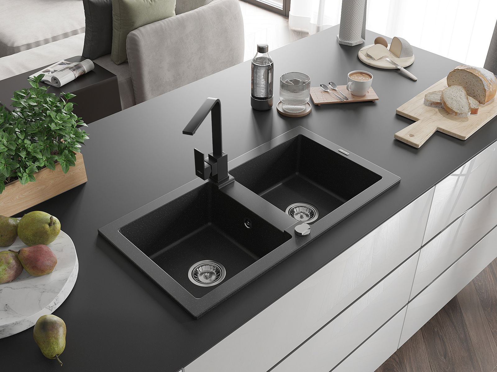 The sink is made of high quality granite. It is an elegant and, above all, practical complement to every kitchen, regardless of its style. High quality and granite durability ensure many years of use.