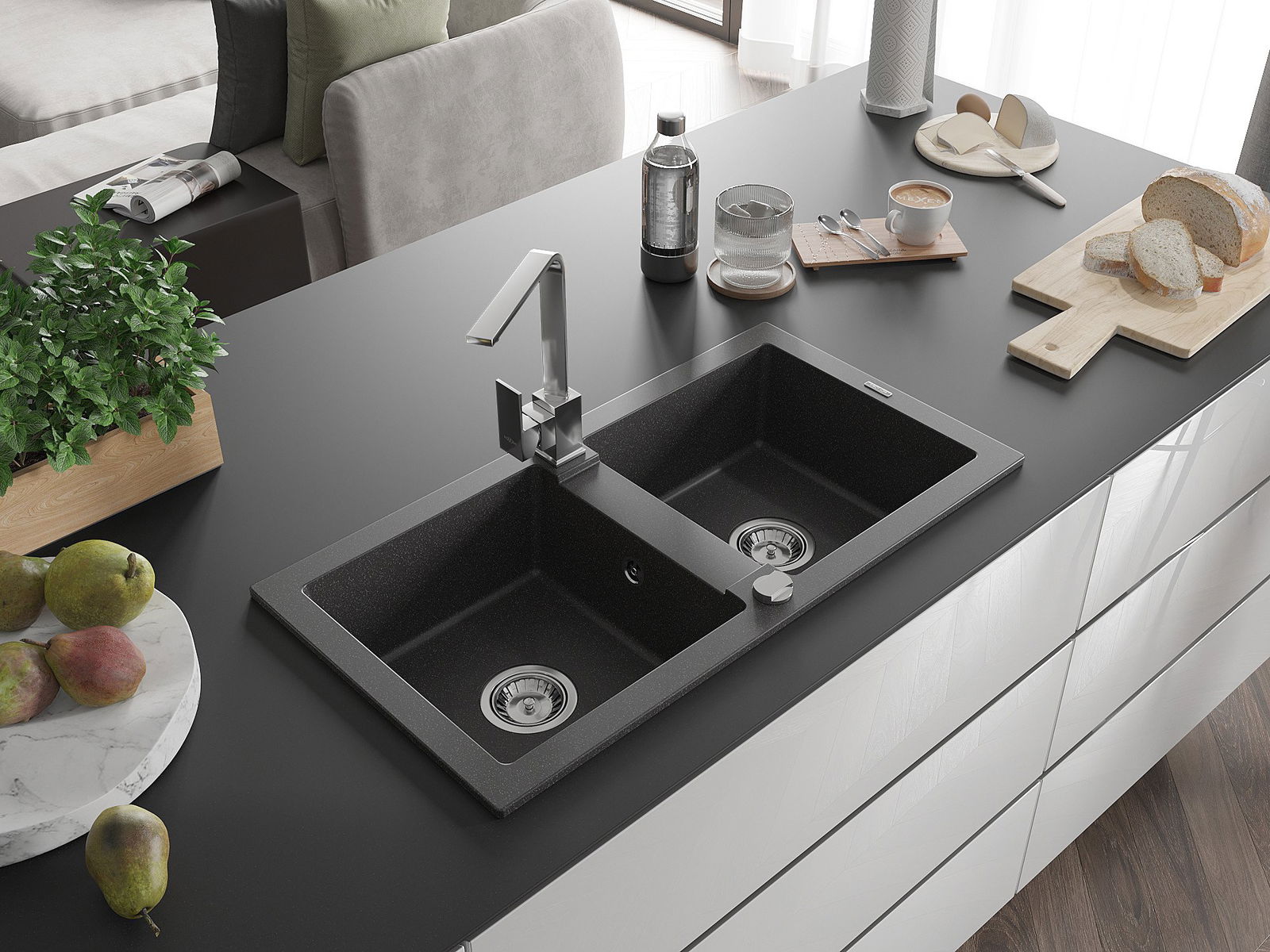 The sink is made of high quality granite. It is an elegant and, above all, practical complement to every kitchen, regardless of its style. High quality and granite durability ensure many years of use.