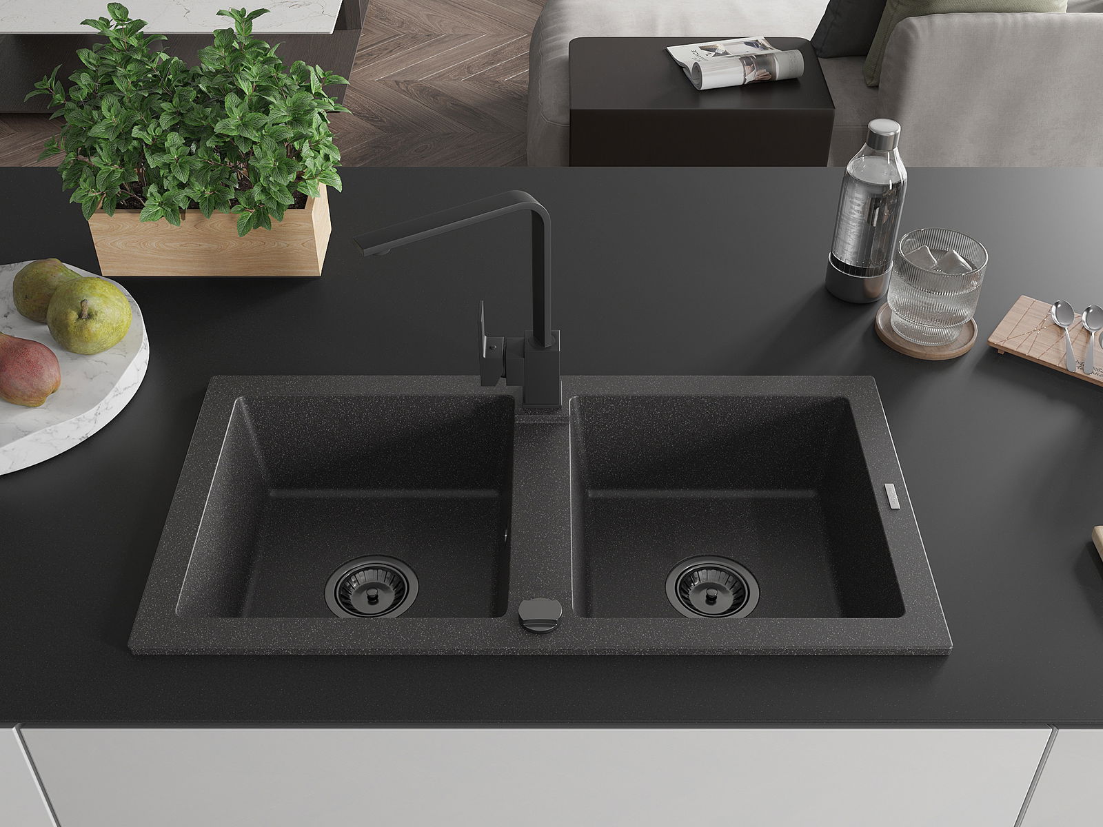 The sink is made of high quality granite. It is an elegant and, above all, practical complement to every kitchen, regardless of its style. High quality and granite durability ensure many years of use.