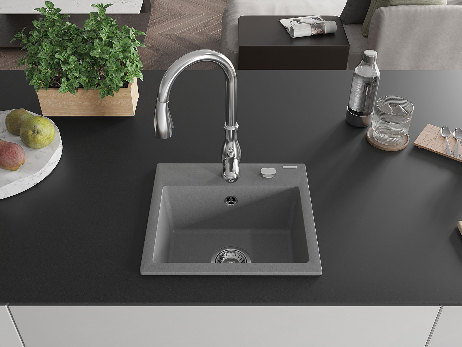 The sink is made of high quality granite. It is an elegant and, above all, practical complement to every kitchen, regardless of its style. High quality and granite durability ensure many years of use.