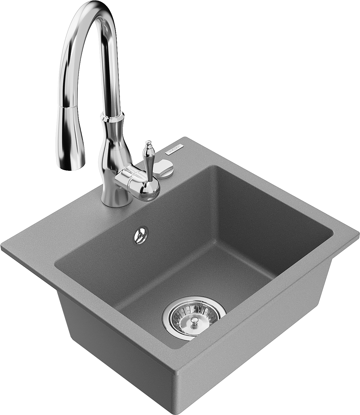 Mexen Milo 1-bowl granite sink with Savita kitchen tap, grey - 6505-71-672601-00