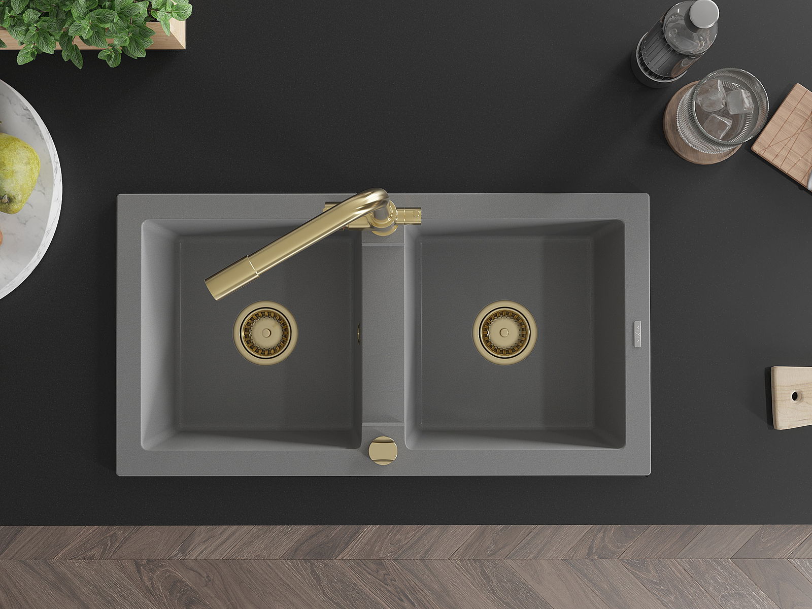 Mexen Mario 2-bowl granite kitchen sink with Duero tap, grey - 6504-71-671600-50