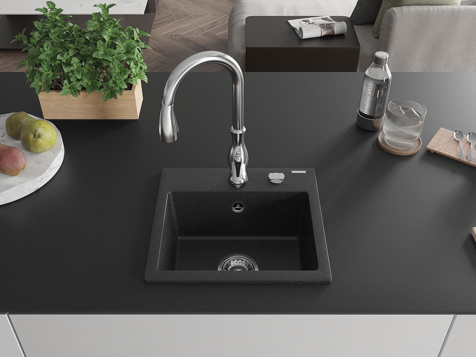 The sink is made of high quality granite. It is an elegant and, above all, practical complement to every kitchen, regardless of its style. High quality and granite durability ensure many years of use.