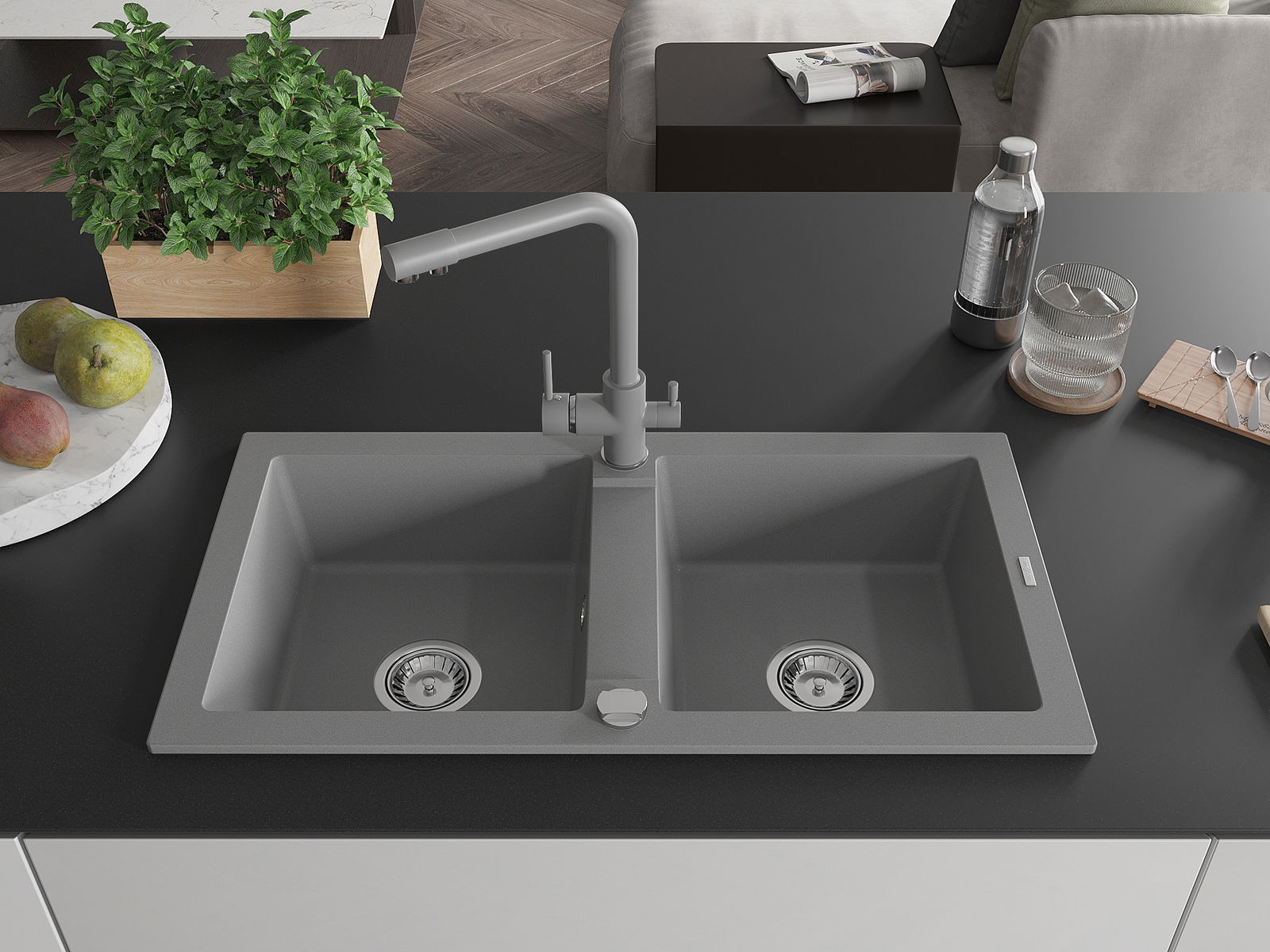 The sink is made of high quality granite. It is an elegant and, above all, practical complement to every kitchen, regardless of its style. High quality and granite durability ensure many years of use.