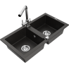 Mexen Mario granite sink 2-bowl with Duero kitchen tap, black/silver metallic - 6504-73-671600-00