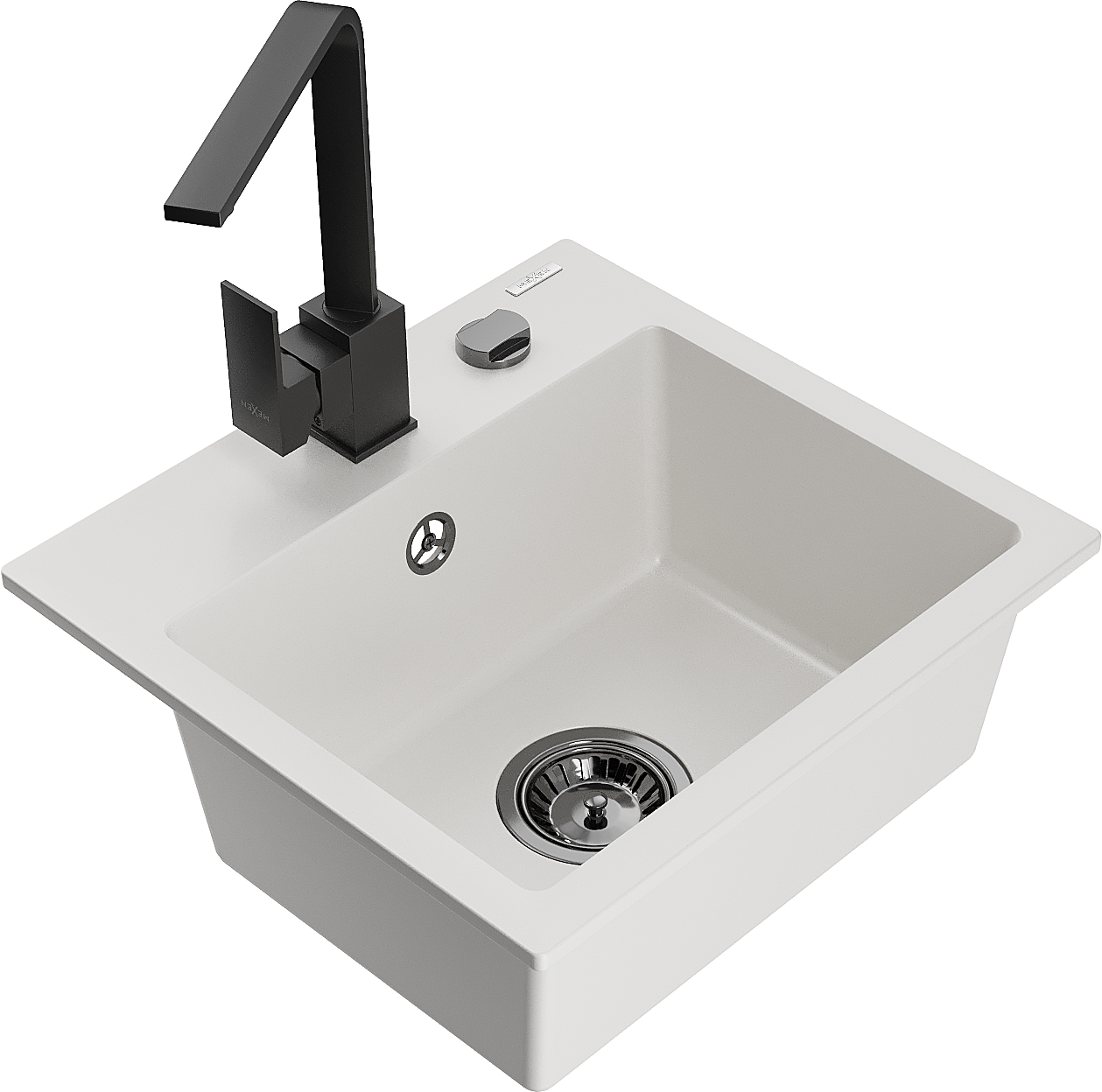 Mexen Milo 1-bowl granite sink with Rita kitchen tap, white - 6505-20-670300-70