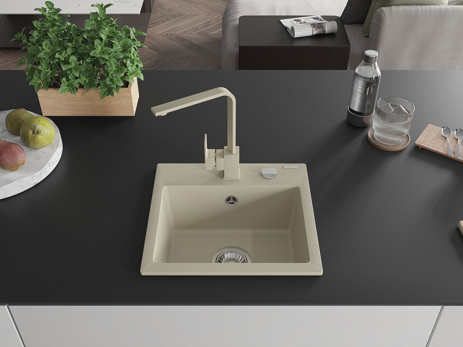 The surface of the sink is resistant to stains and discoloration, thanks to which it is easy to clean and retains its color for a long time. Aesthetic and practically complementing every kitchen.