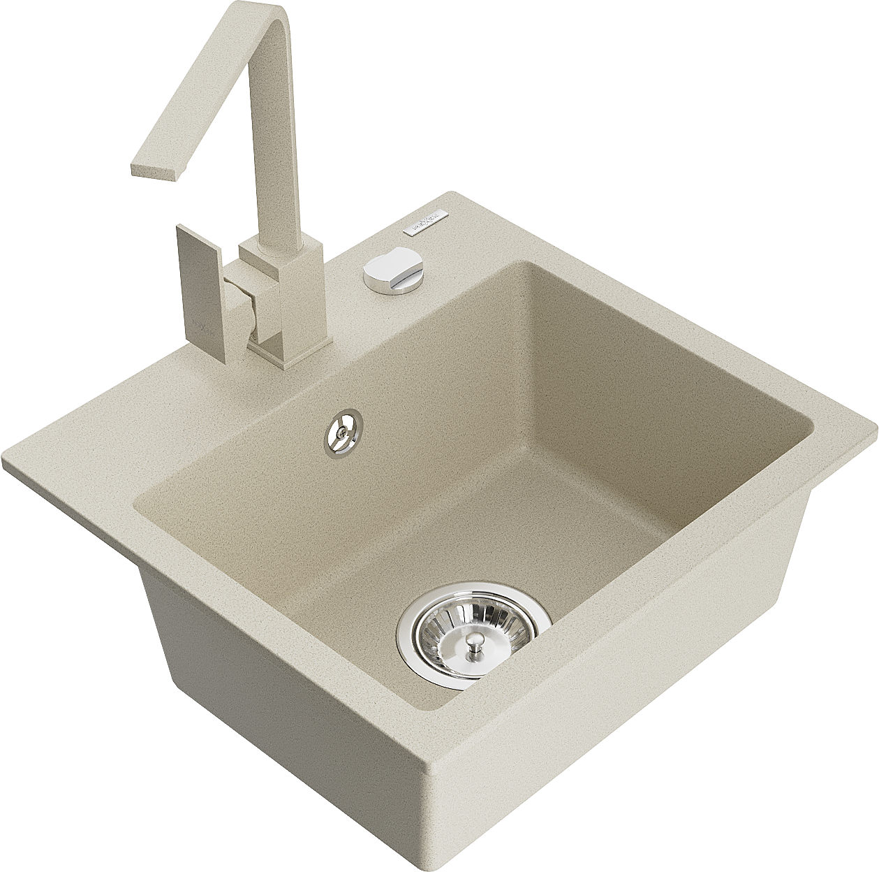 Mexen Milo 1-bowl Granite Sink with Rita Kitchen Tap, Beige - 6505-69-670300-69