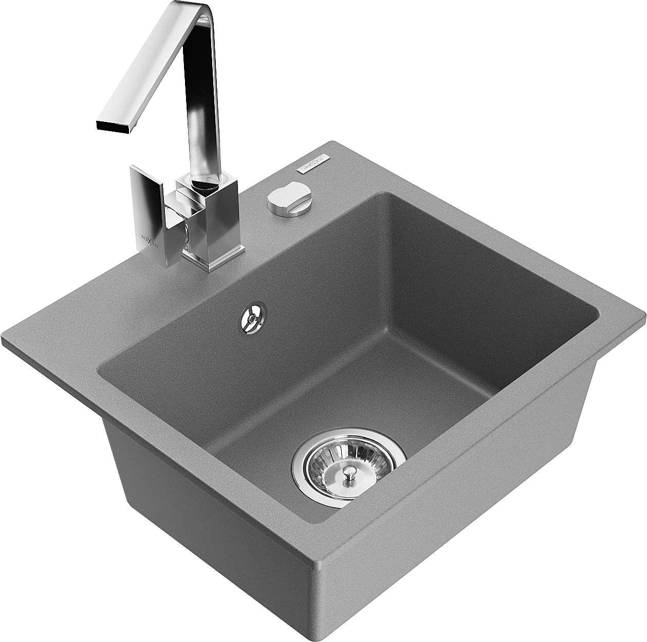 Mexen Milo 1-bowl granite sink with Rita kitchen tap, grey - 6505-71-670300-00