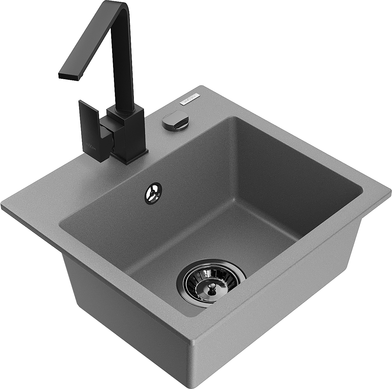 Mexen Milo 1-bowl granite kitchen sink with Rita tap, grey - 6505-71-670300-70-B