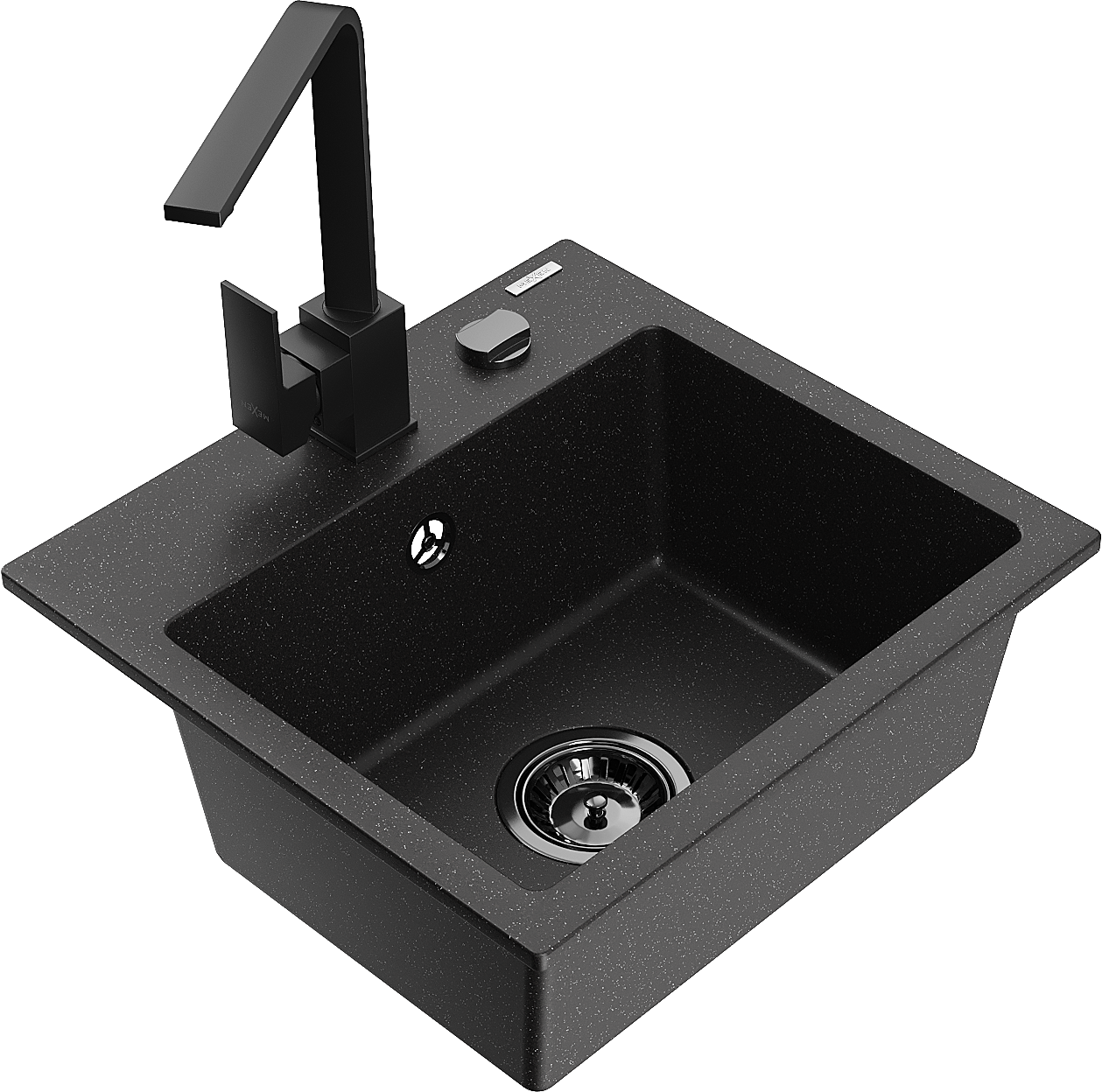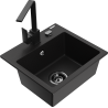 Mexen Milo granite kitchen sink 1-bowl with Rita kitchen tap, black/silver metallic - 6505-73-670300-70-B